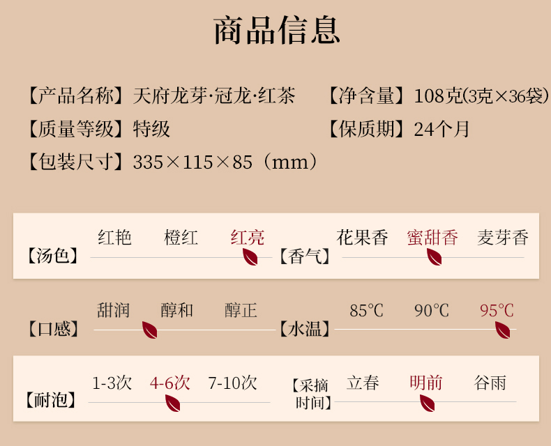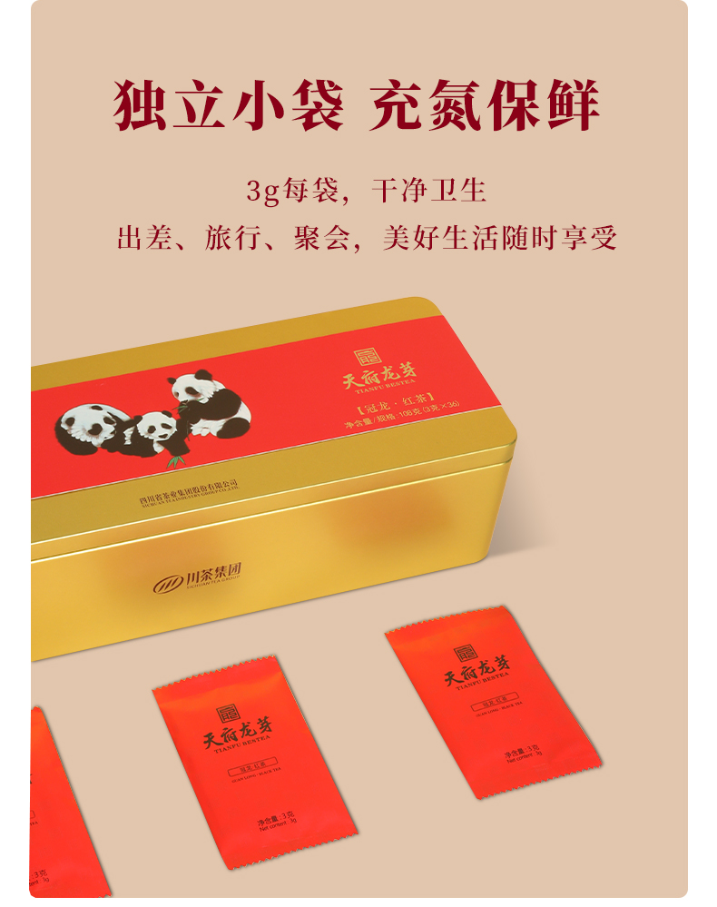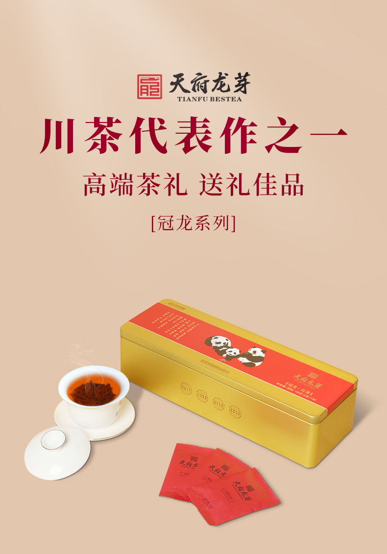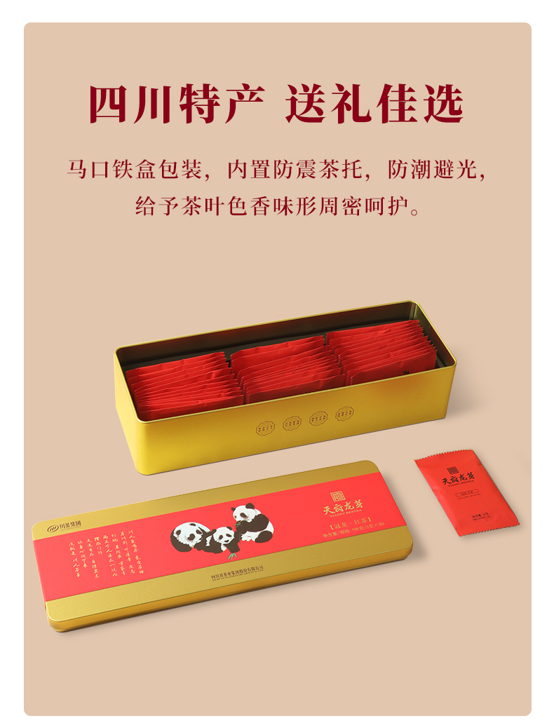 商品名称:天府龙芽熊猫款冠龙系列特级红茶礼盒装108g