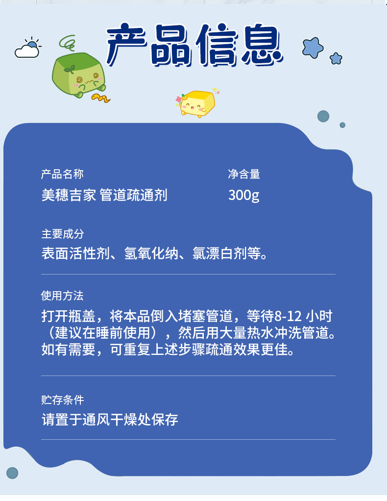 商品名称:美穗吉家管道疏通剂300g*5瓶