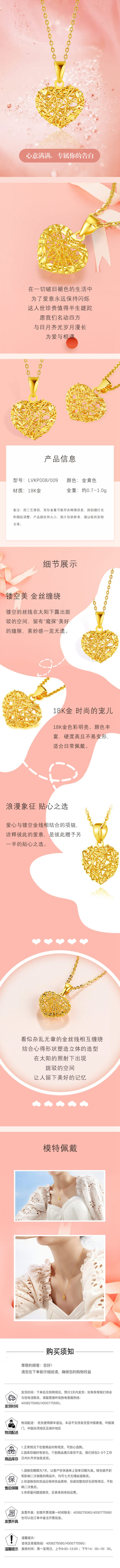 商品名称:佐禧佑福 18k金爱心吊坠彩金黄金色心形绕丝线条女款ZXYFPL08