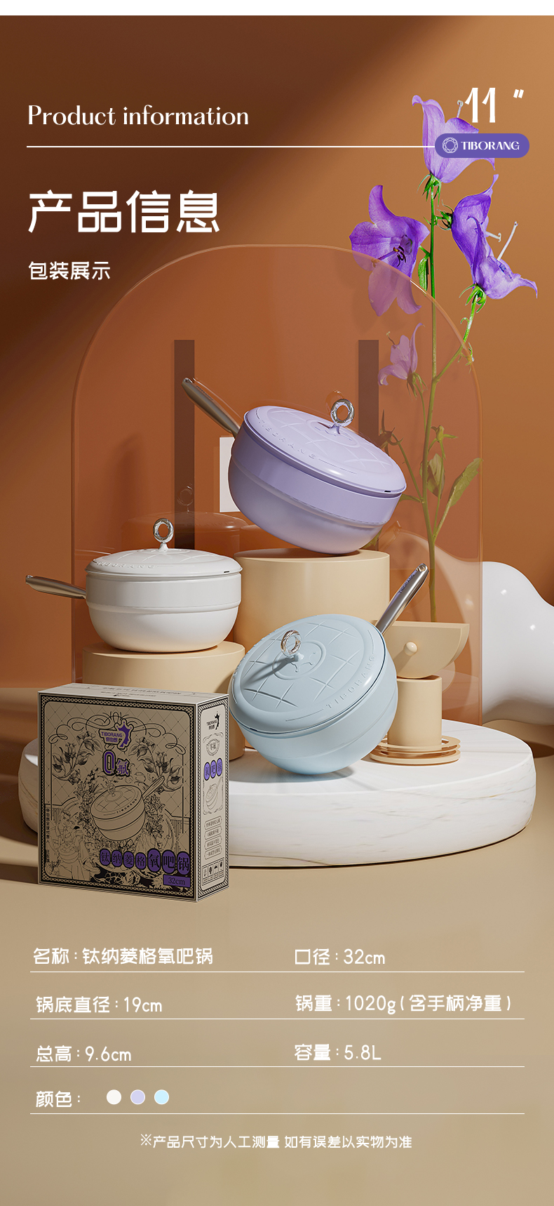 商品名称:【京东配送】TIBORANG/帝伯朗零氟系列32cm钛纳菱格氧吧锅