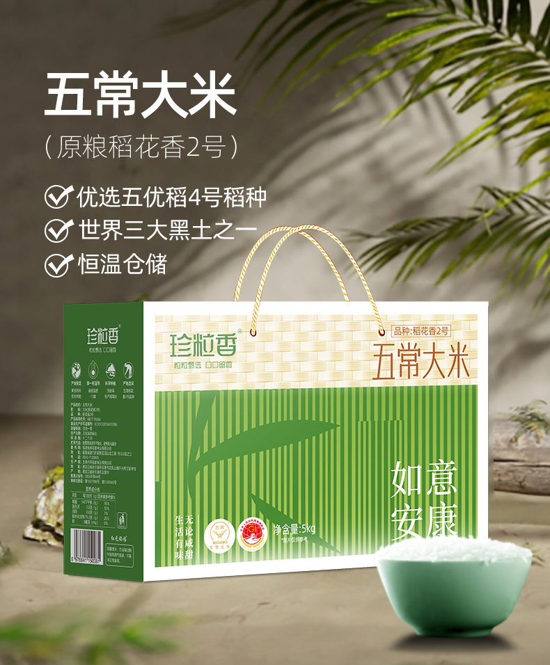 商品名称:珍粒香如意安康五常大米礼盒5kg
