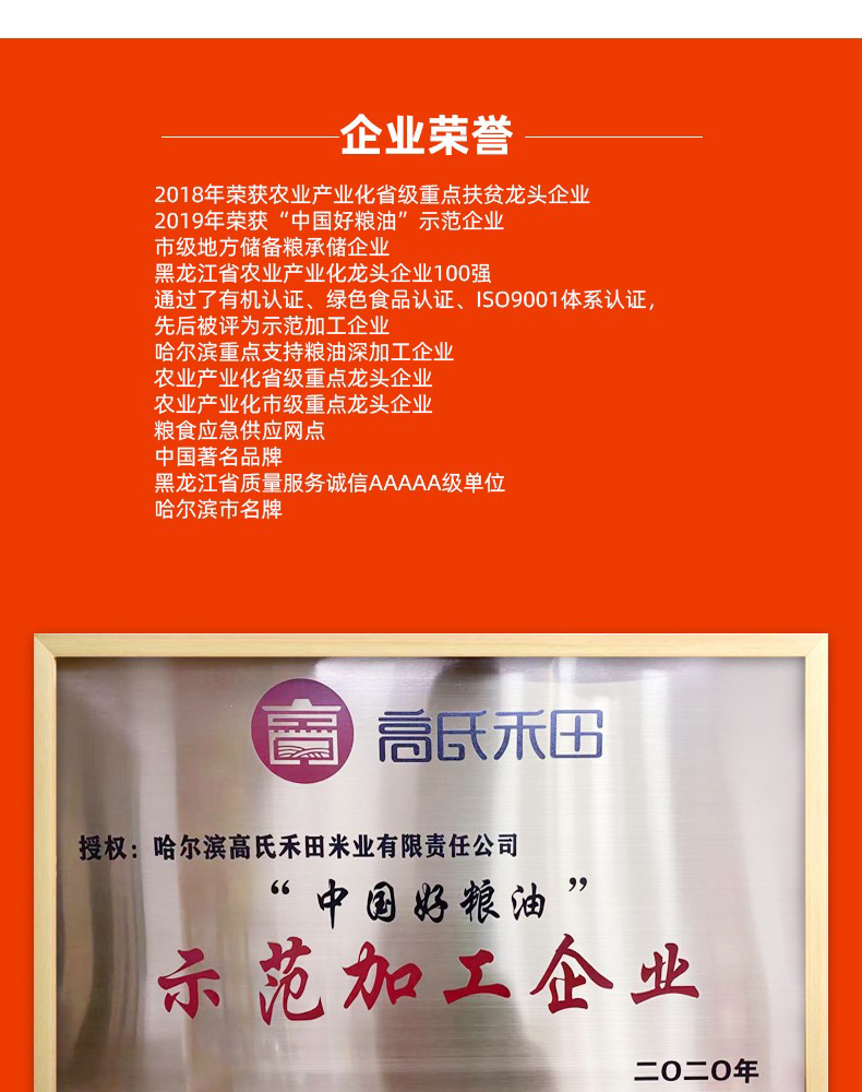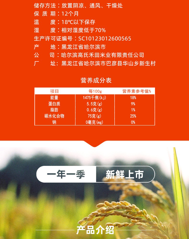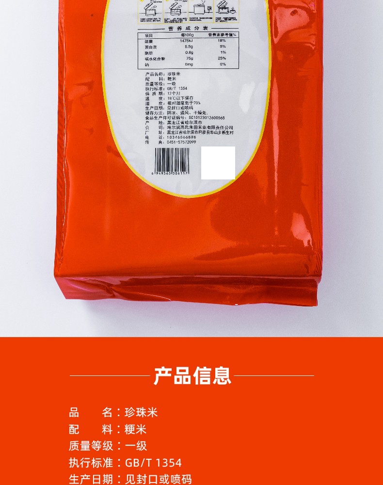 商品名称:高氏禾田东北大米珍珠米红色真空包装2.5kg