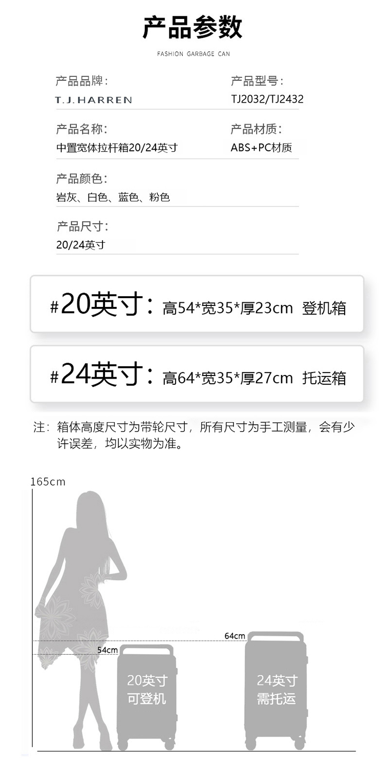 商品名称:TJ HARREN/蒂捷海伦中置宽体拉杆箱TJ2032