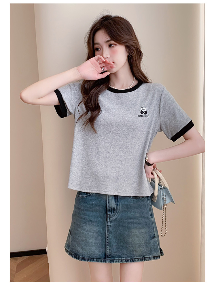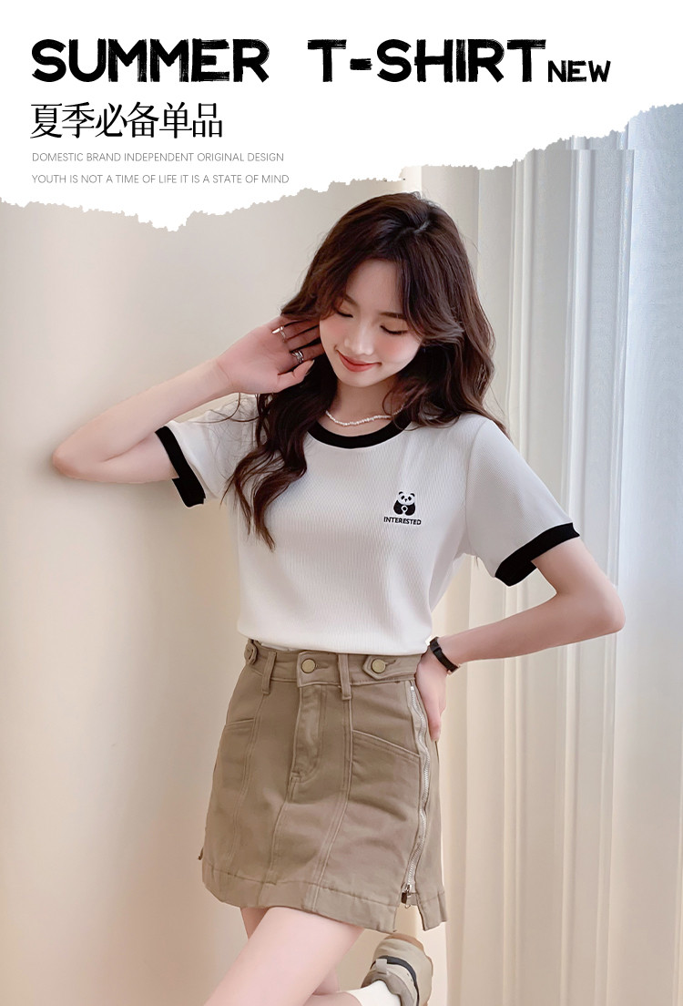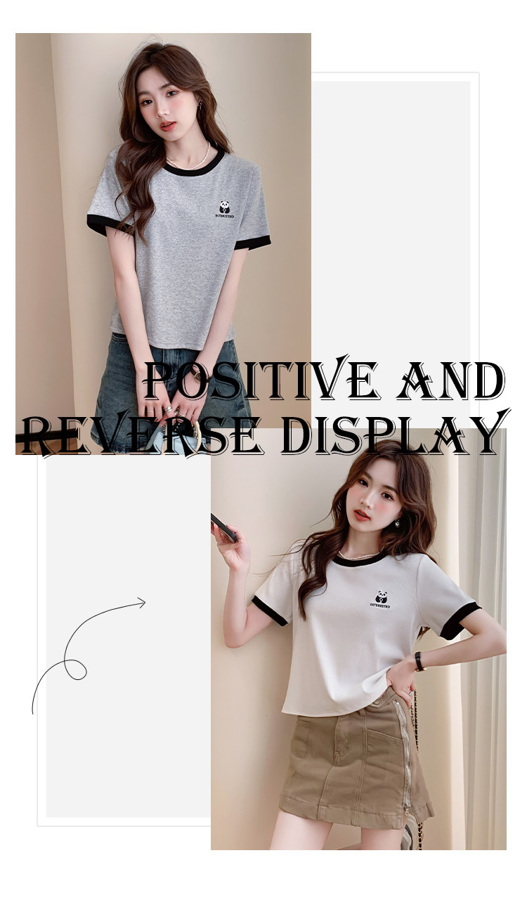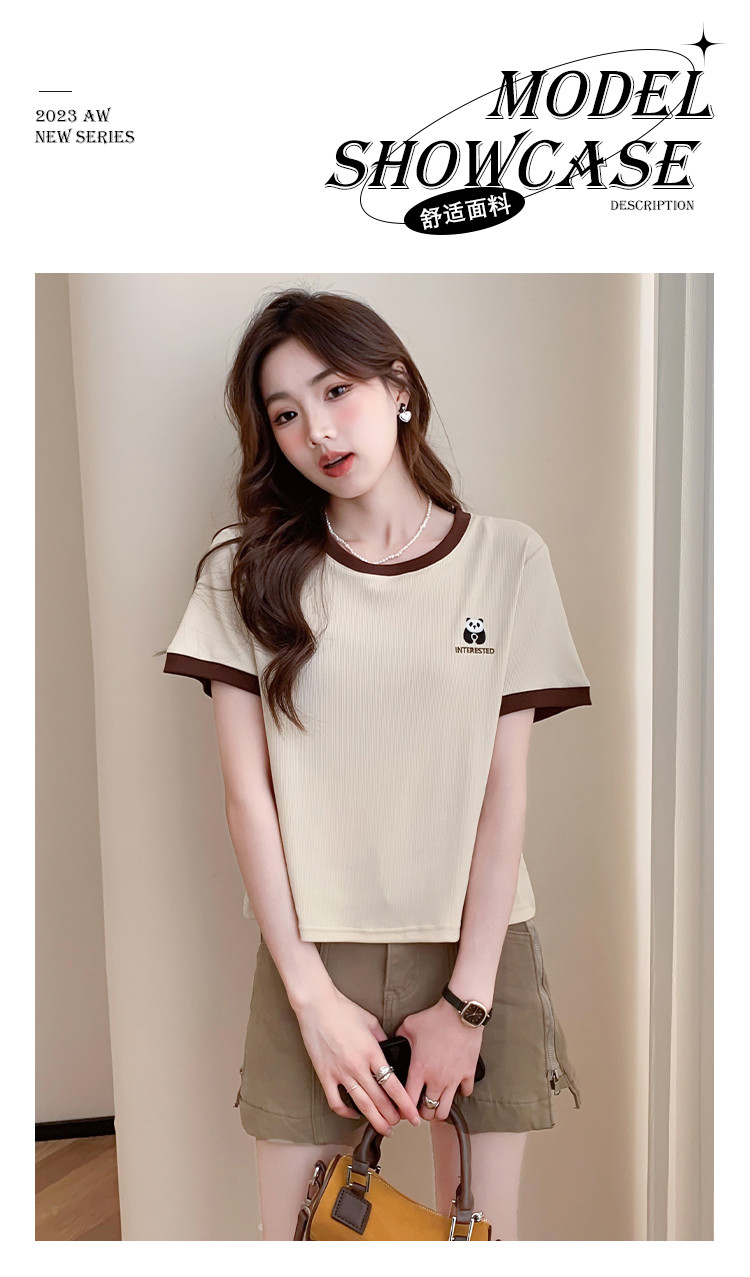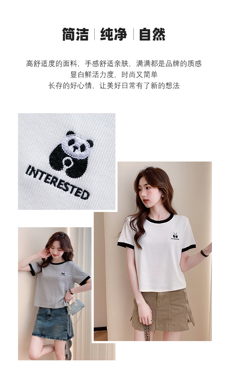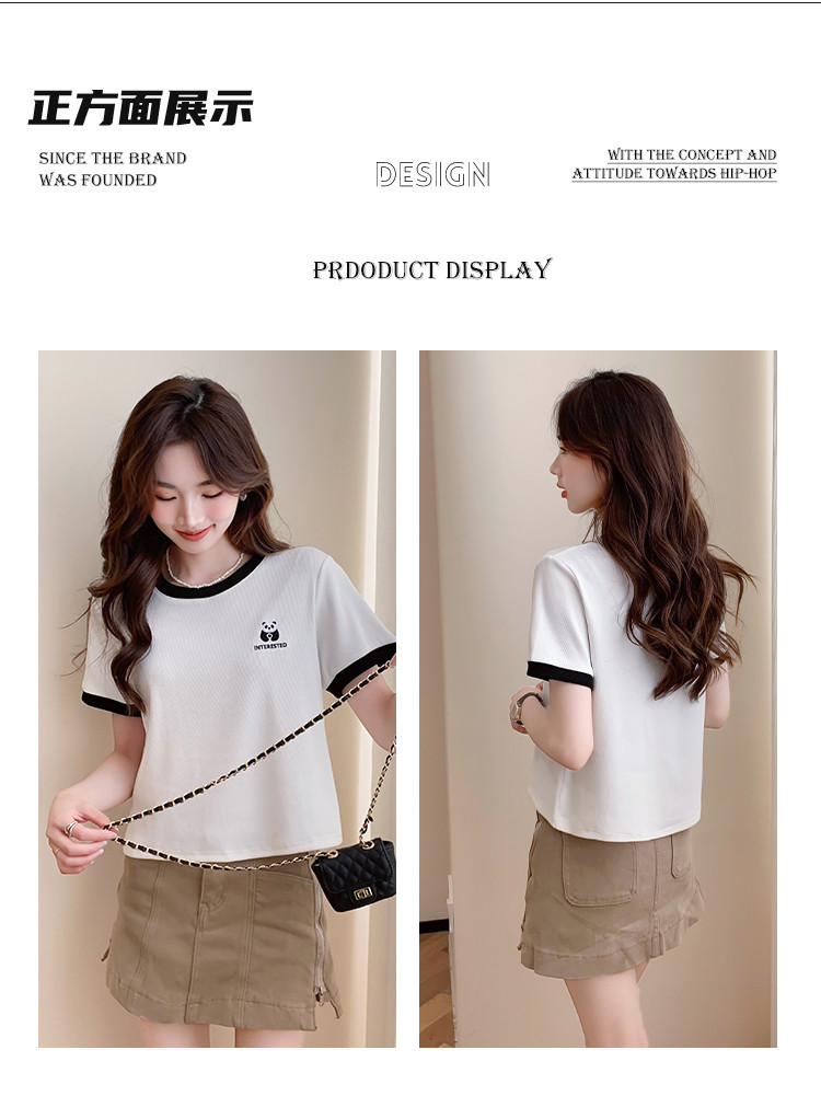 商品名称:拼接爆款甜美风夏季女式短袖T恤修身透气时尚印花圆领漂亮女上衣 351425