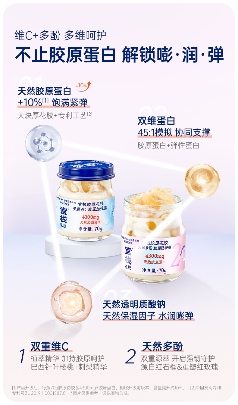 商品名称:官栈胶原花胶两种口味礼盒装70g*12瓶
