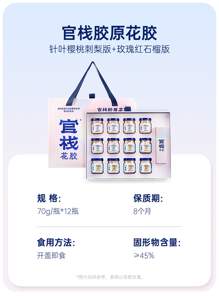 官栈胶原花胶两种口味礼盒装70g*12瓶