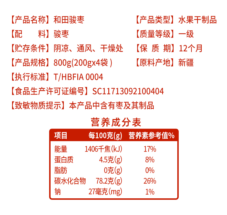 商品名称:耘田生活和田骏枣礼盒800g