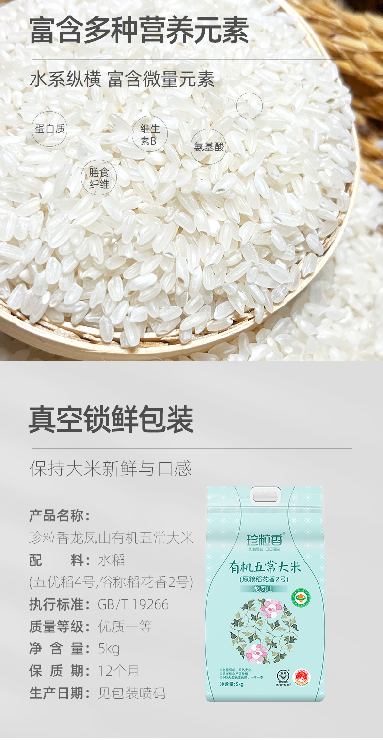 商品名称:珍粒香龙凤山有机五常大米5kg