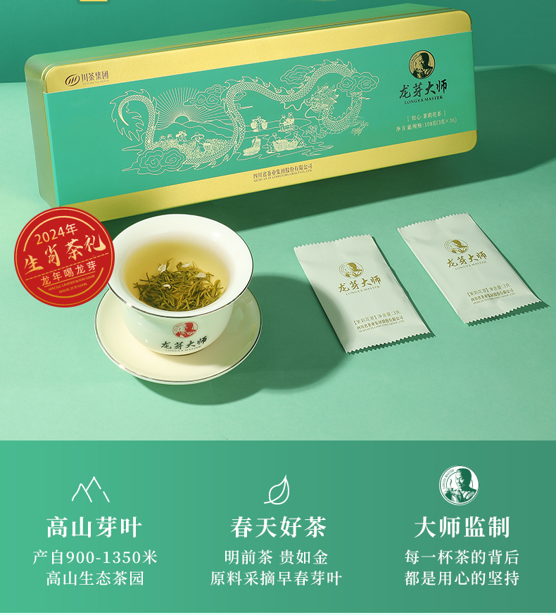 龙芽大师知心系列特种烘青茉莉花茶礼盒装108g