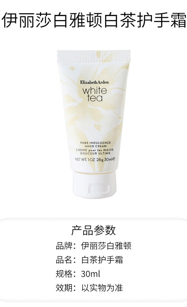 商品名称:Elizabeth Arden/伊丽莎白雅顿白茶护手霜30ml*2支(专柜版)