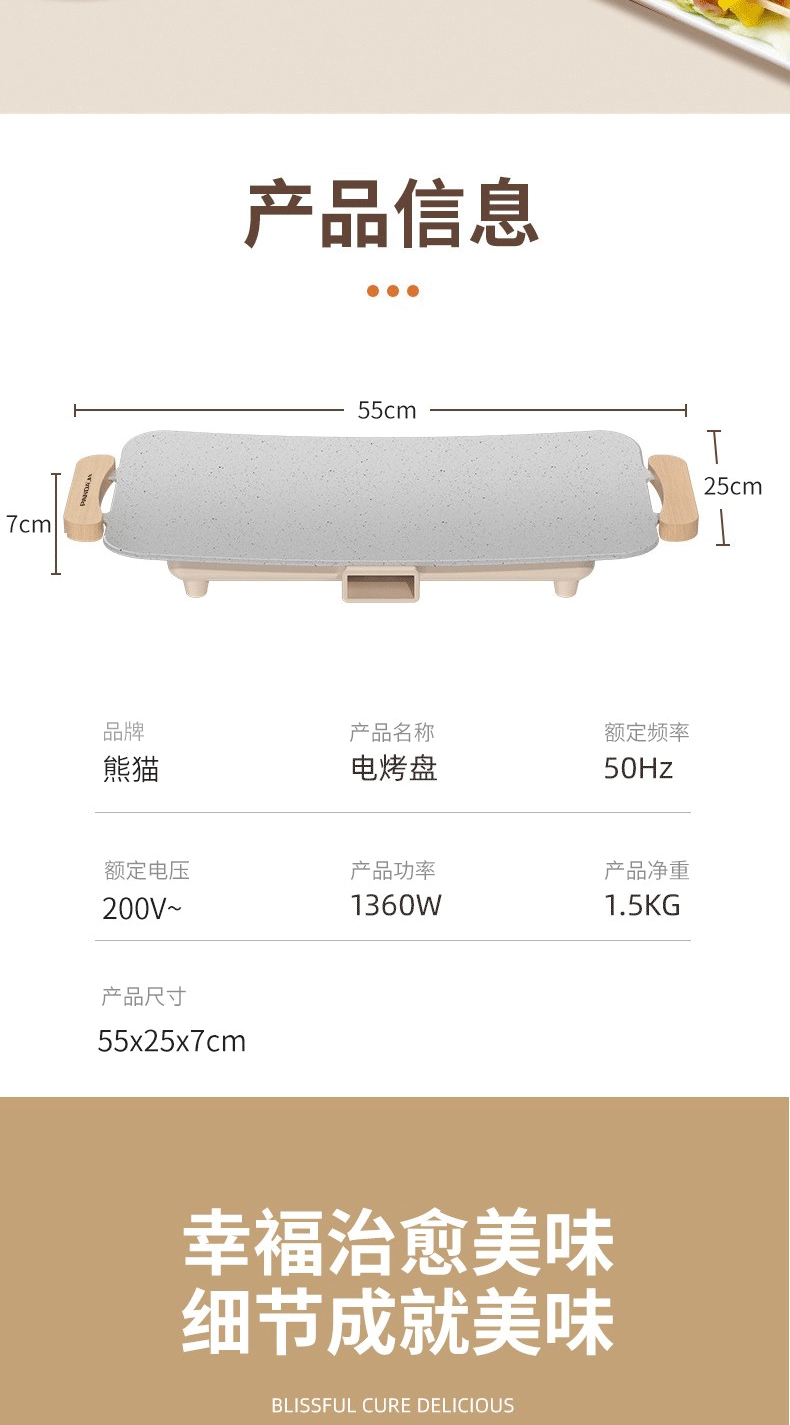 商品名称:PANDA/熊猫55cm电烤盘TRKP05