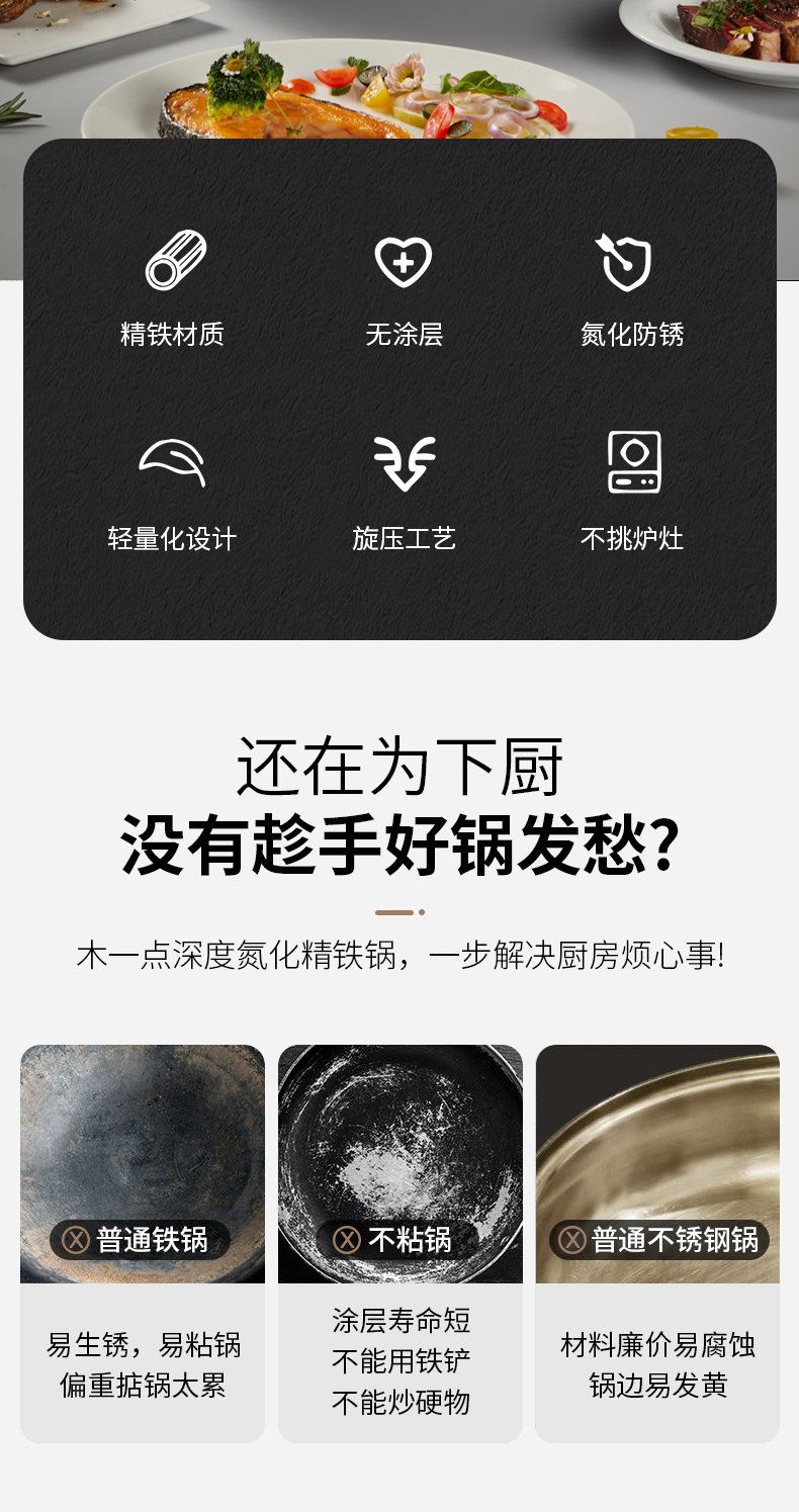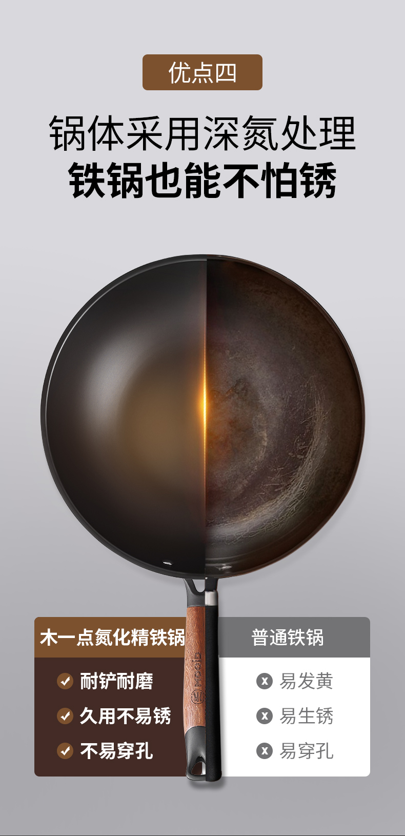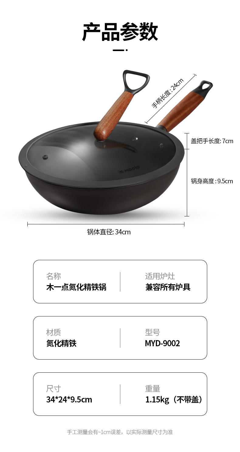商品名称:MOOID/木一点34cm氮化精铁炒锅MYD-9002