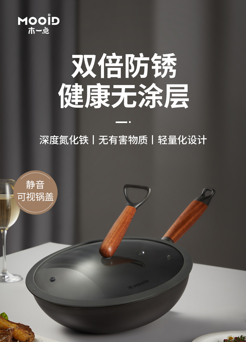 MOOID/木一点34cm氮化精铁炒锅MYD-9002
