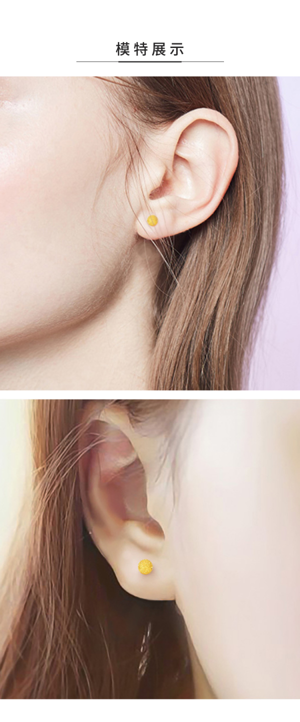 佐禧佑福耳钉磨砂路路通女款足金耳饰新款珠宝首饰约1.60g