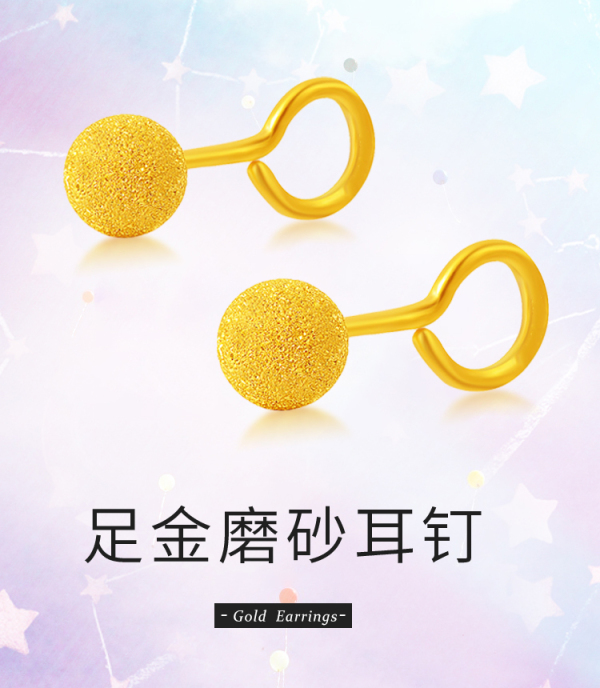 商品名称:佐禧佑福耳钉磨砂路路通女款足金耳饰新款珠宝首饰约1.60g