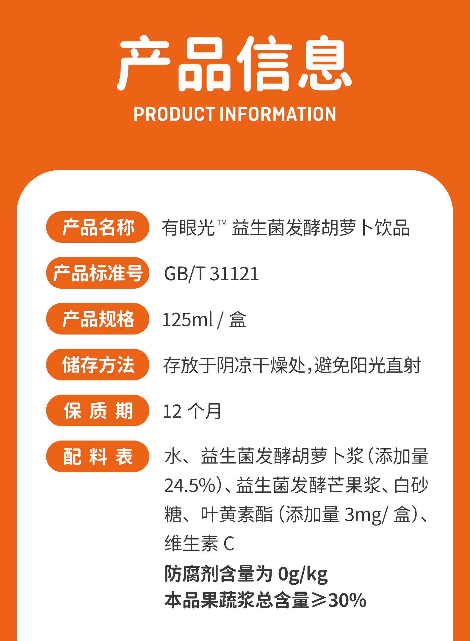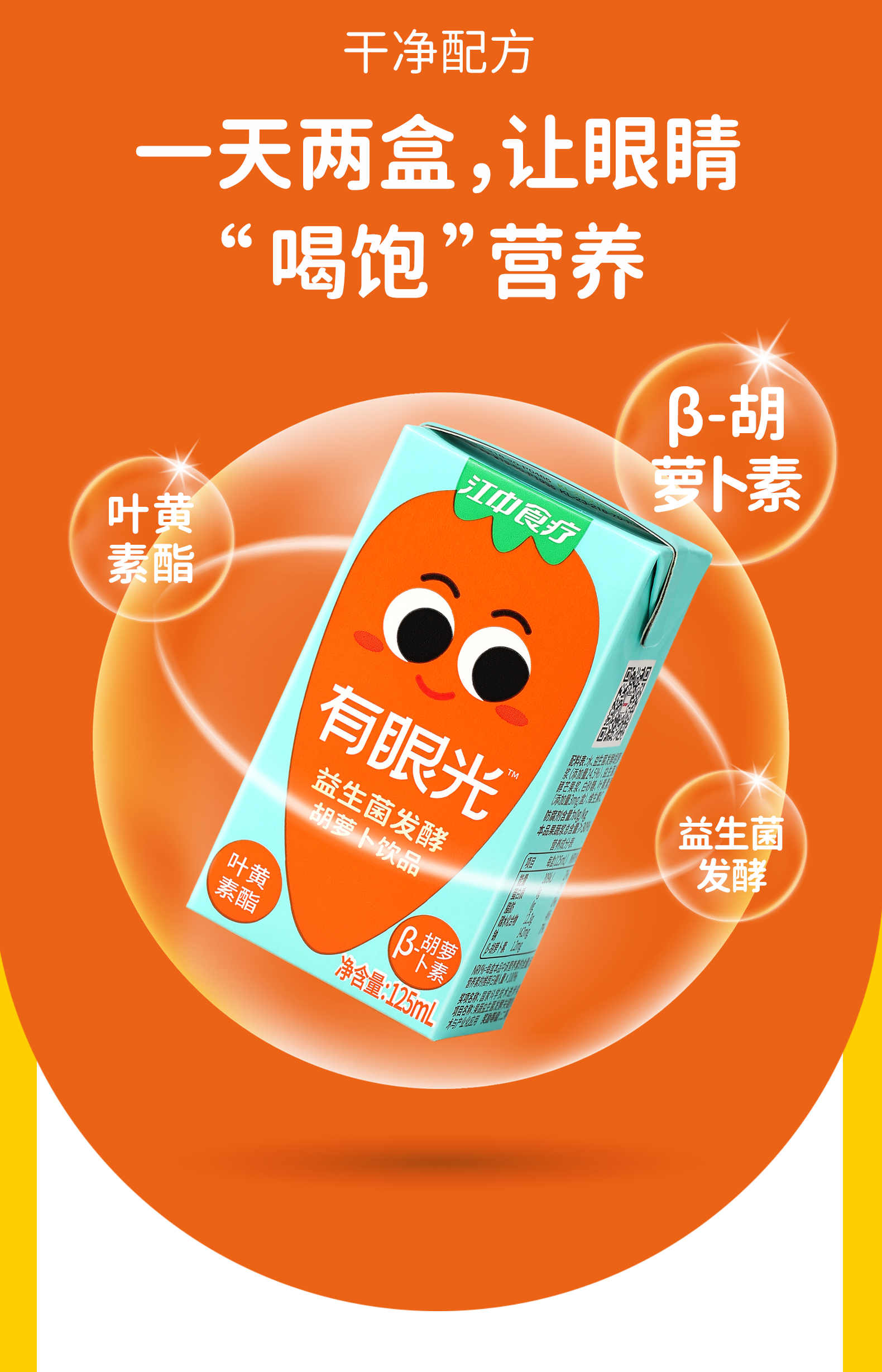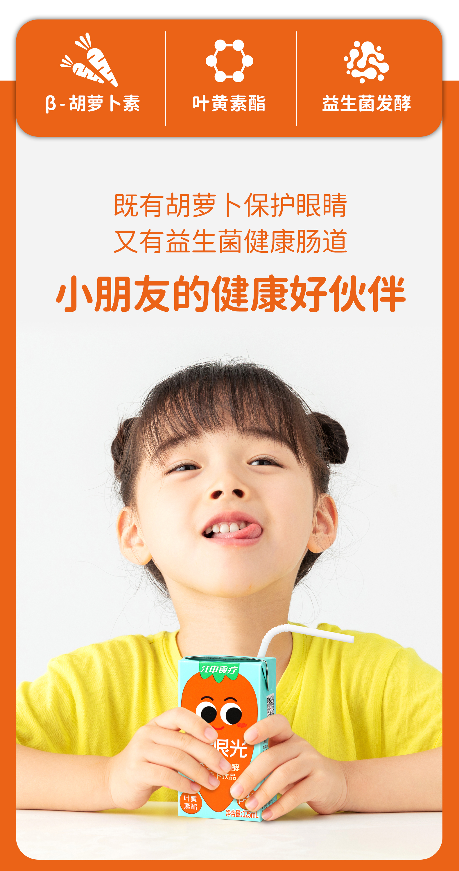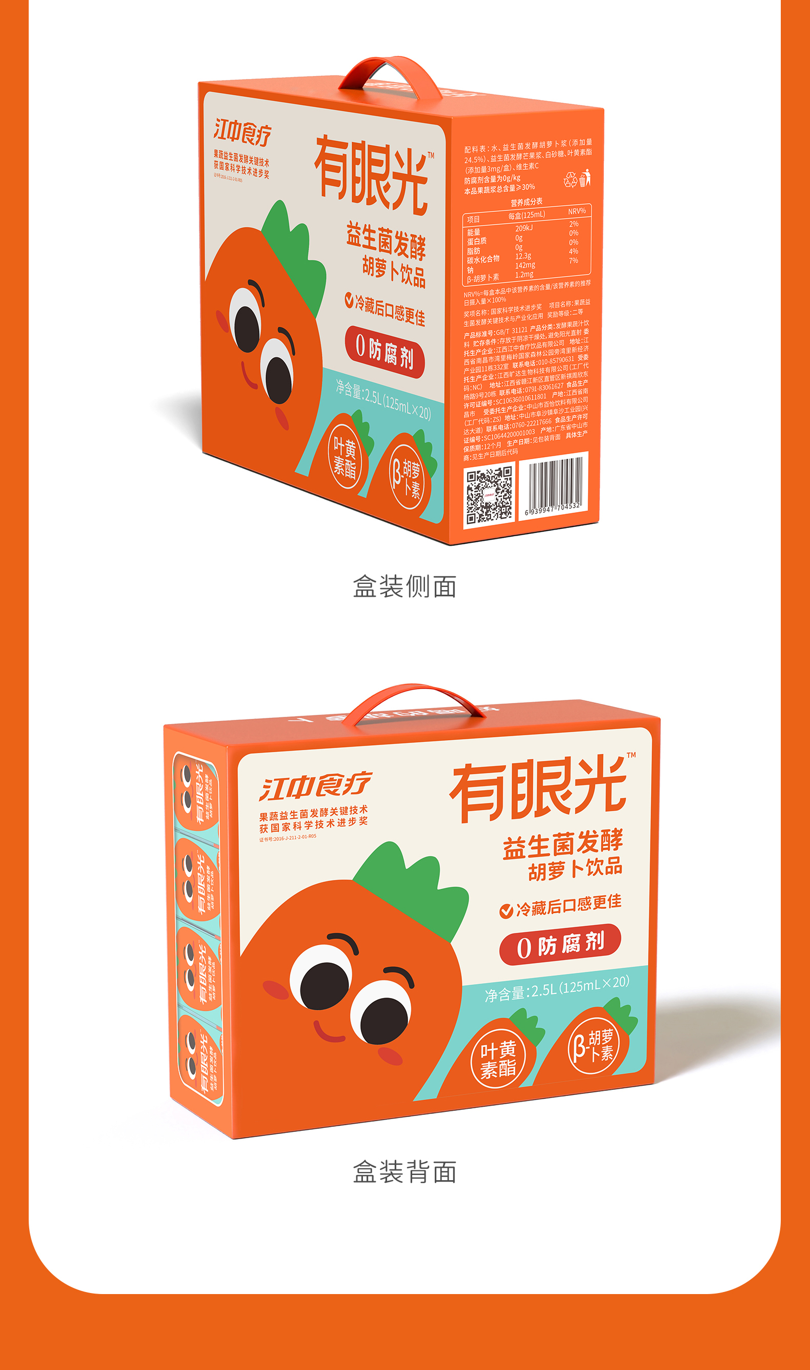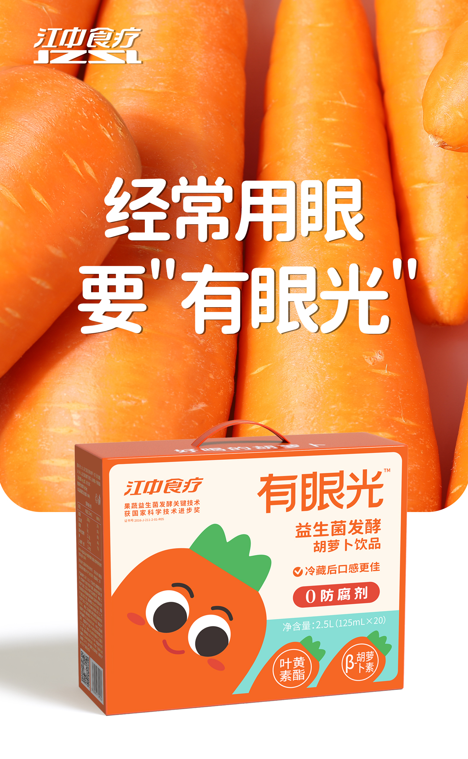商品名称:江中食疗有眼光益生菌发酵胡萝卜饮品整箱125ml*20盒