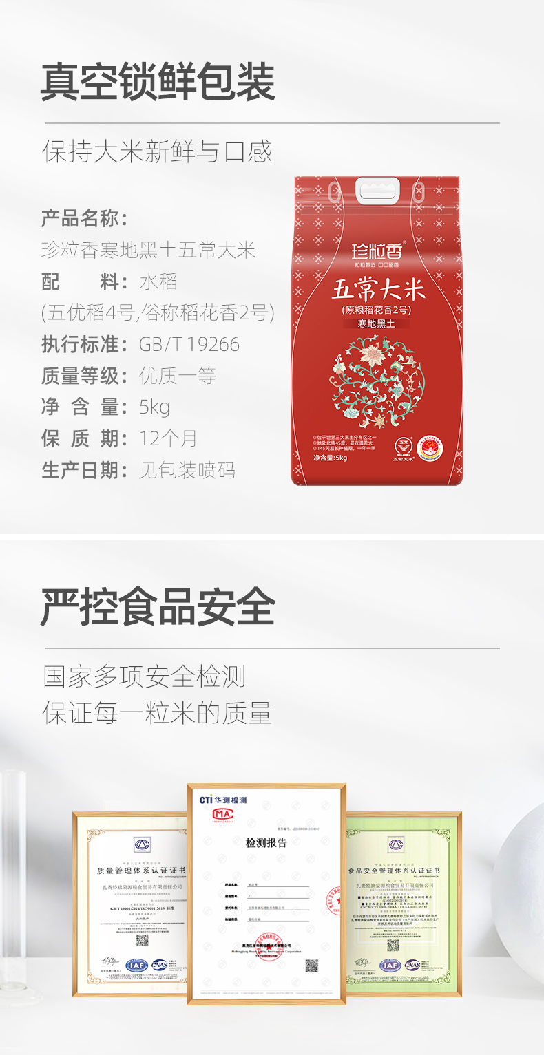 商品名称:珍粒香寒地黑土五常大米5kg