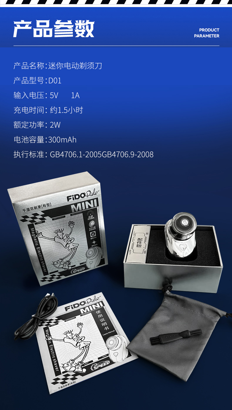 商品名称:FIDO DIDO七喜小子迷你电动剃须刀D01