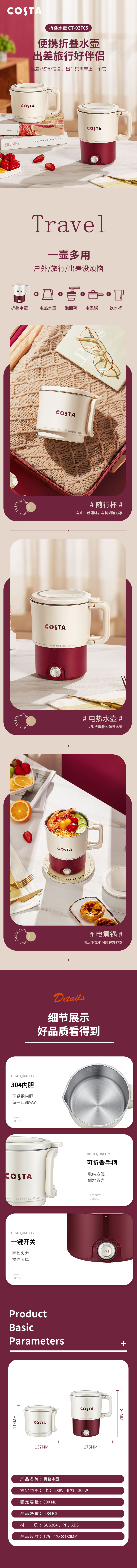 商品名称:【德邦配送】COSTA 800毫升折叠电热水壶CT-03F05