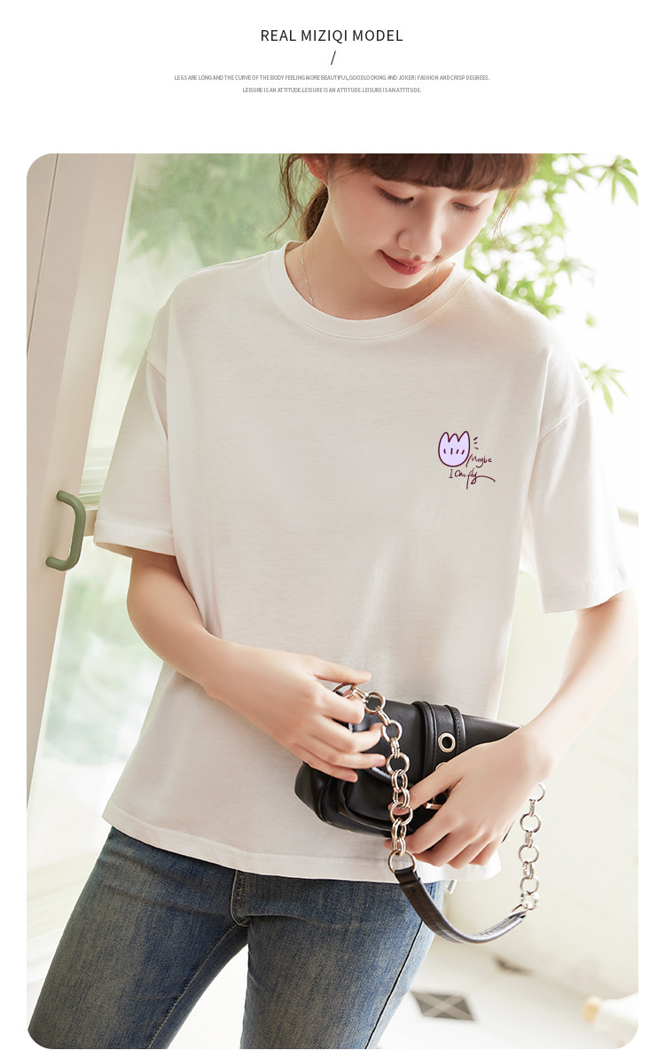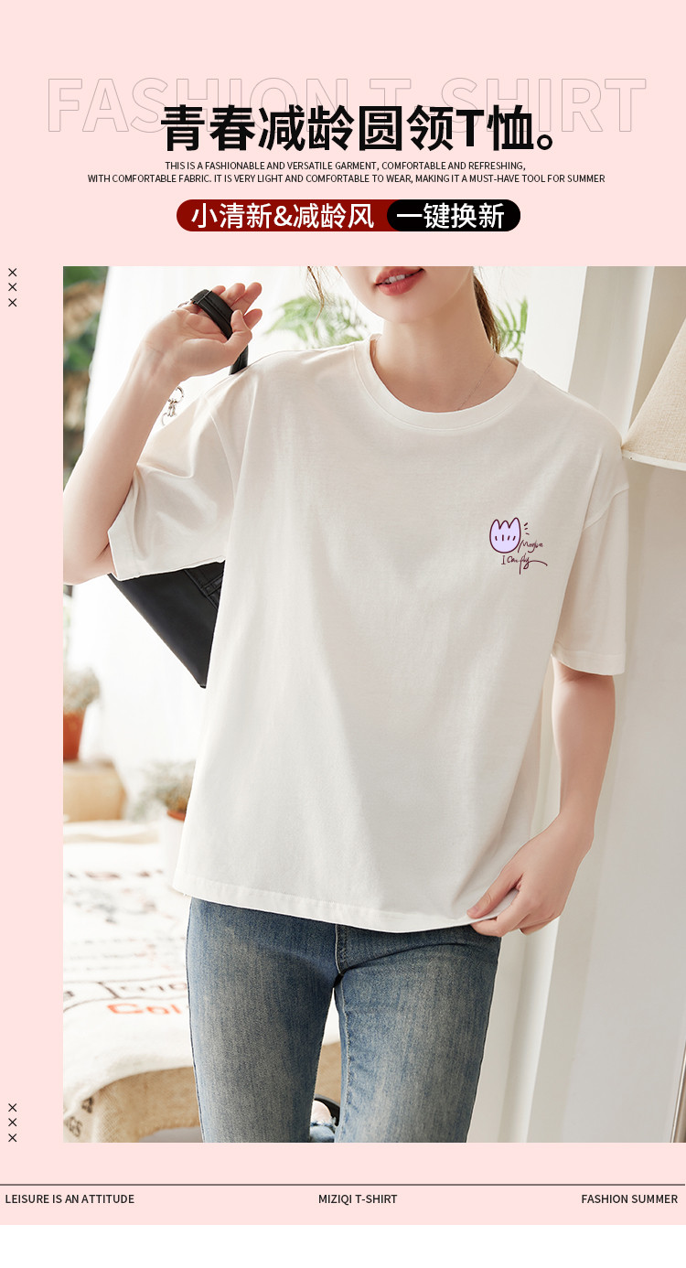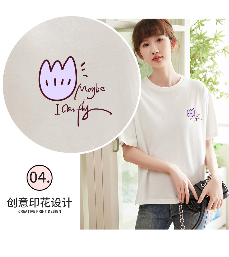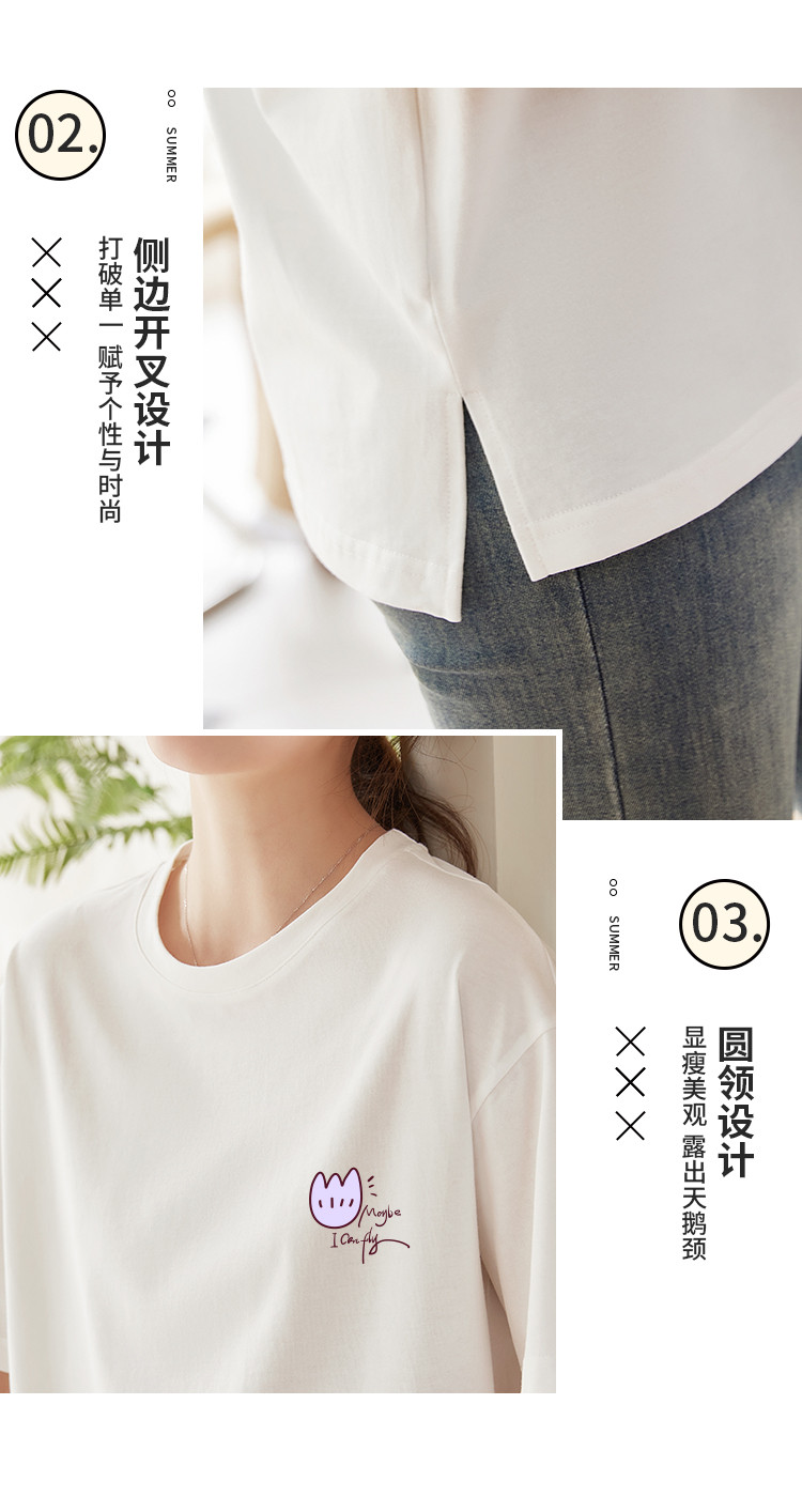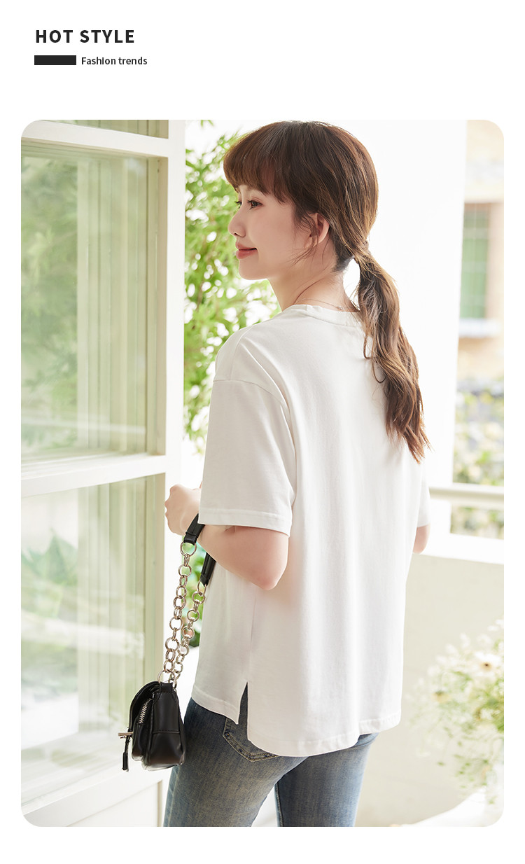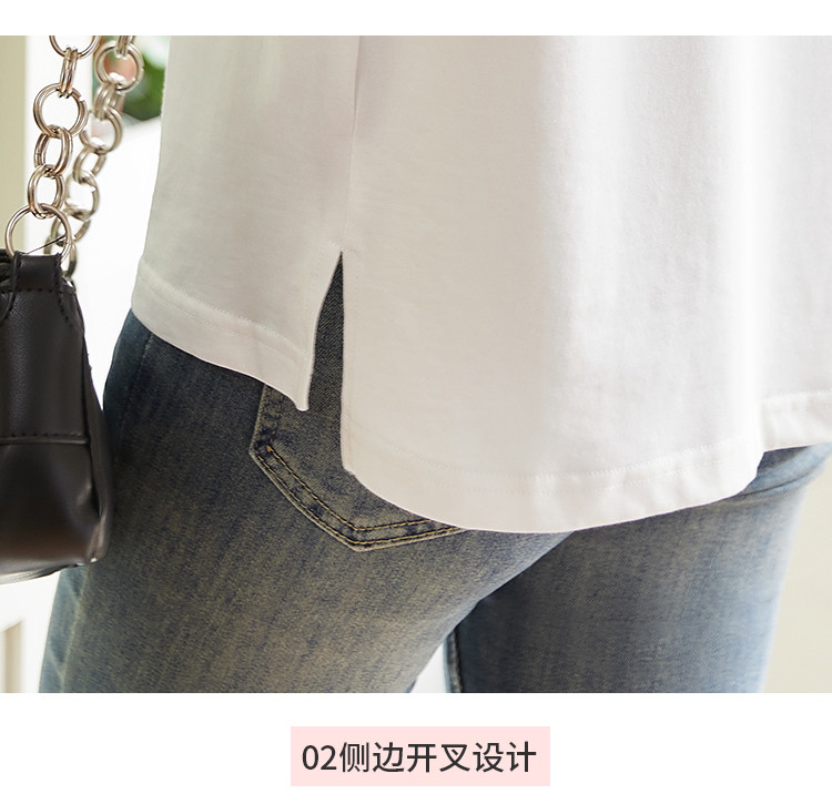 商品名称:米子旗夏季时尚潮流简约印花上衣侧边开叉宽松短袖大码T恤女 704794