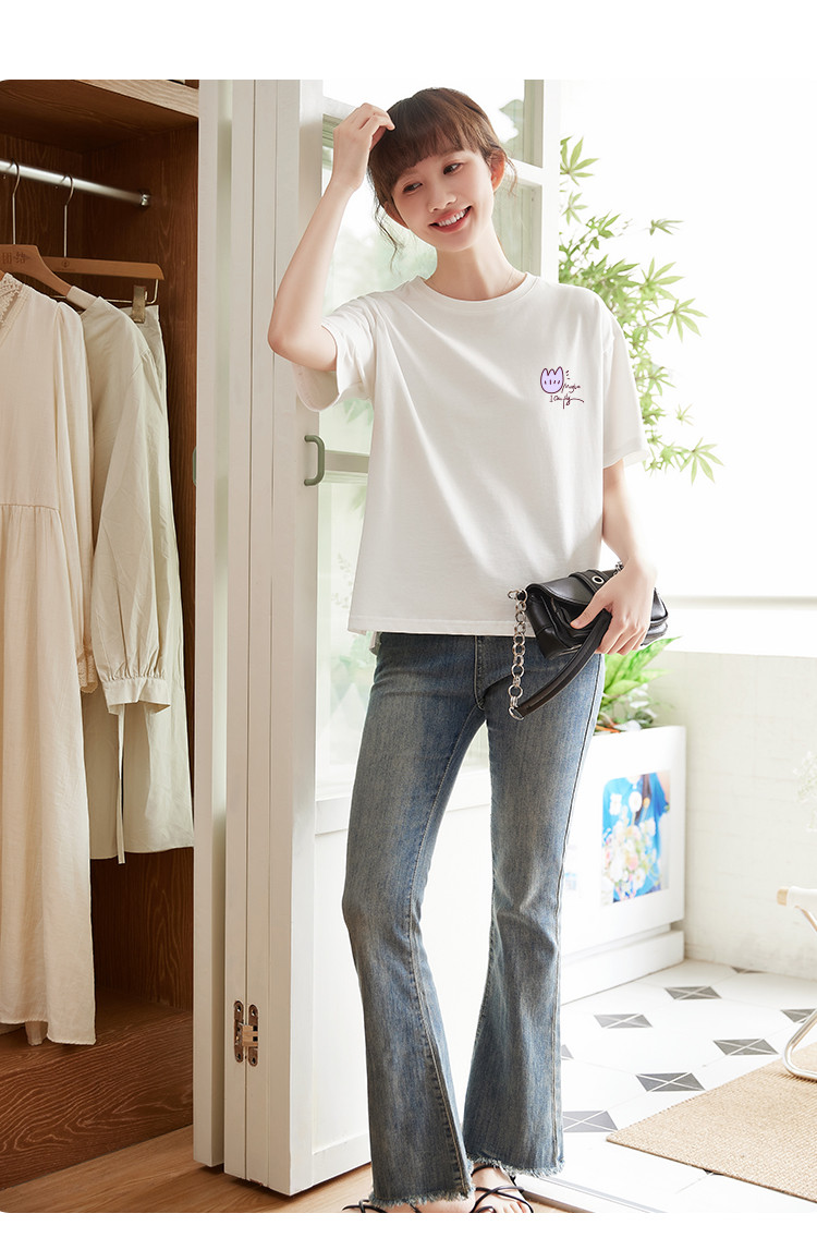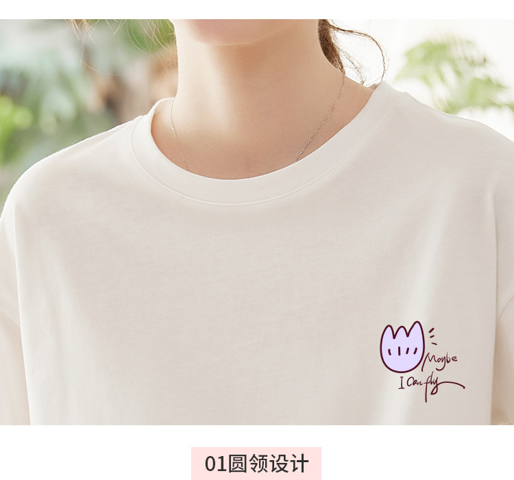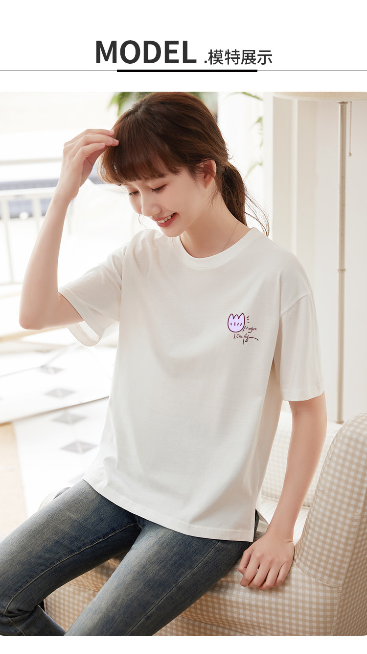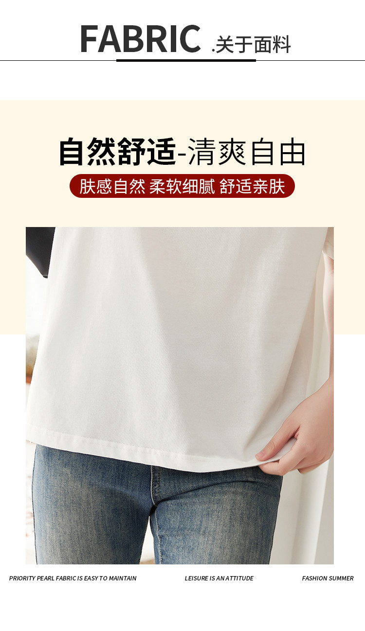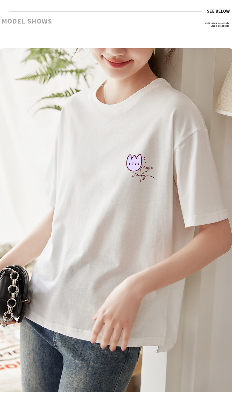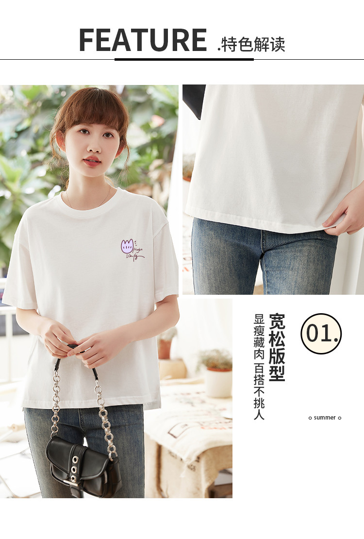 商品名称:米子旗夏季时尚潮流简约印花上衣侧边开叉宽松短袖大码T恤女 704794