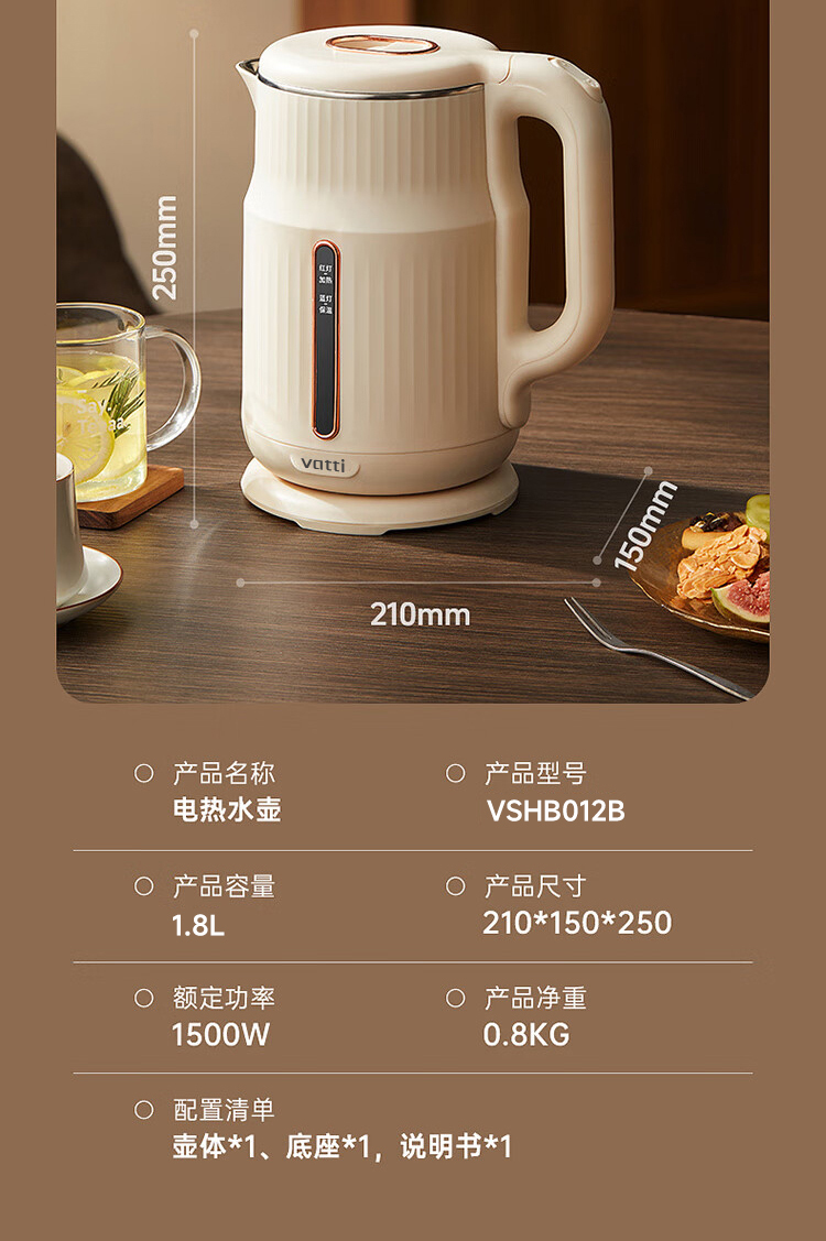 商品名称:vatti/华帝1.8升电热水壶VSH012B