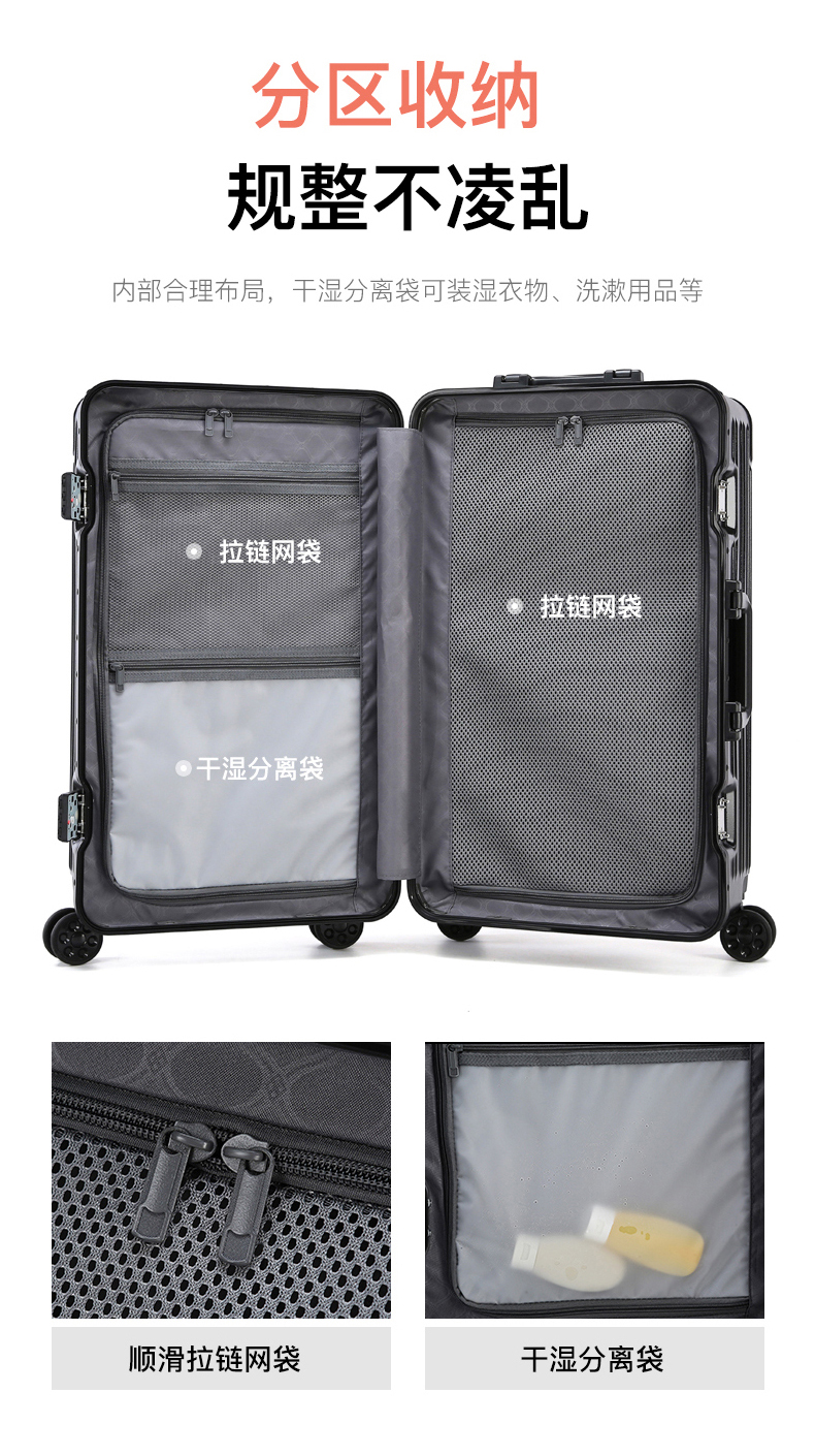 商品名称:趣游帮韩版铝框三七分深仓万向轮拉杆箱24寸JDY-1203