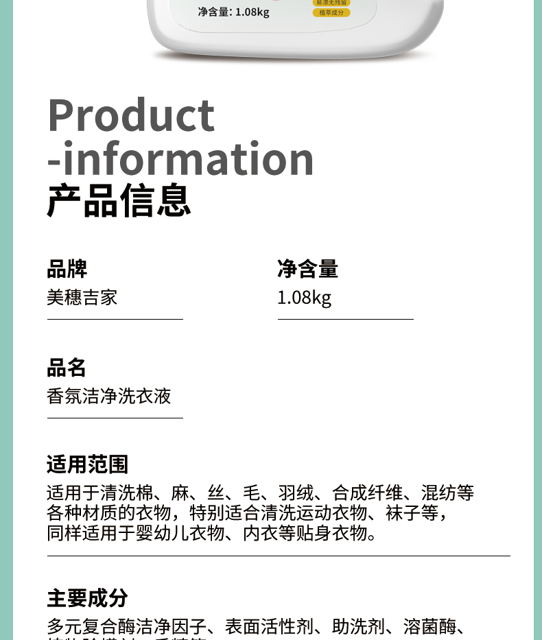 商品名称:美穗吉家香氛洁净洗衣液1.08kg*3瓶