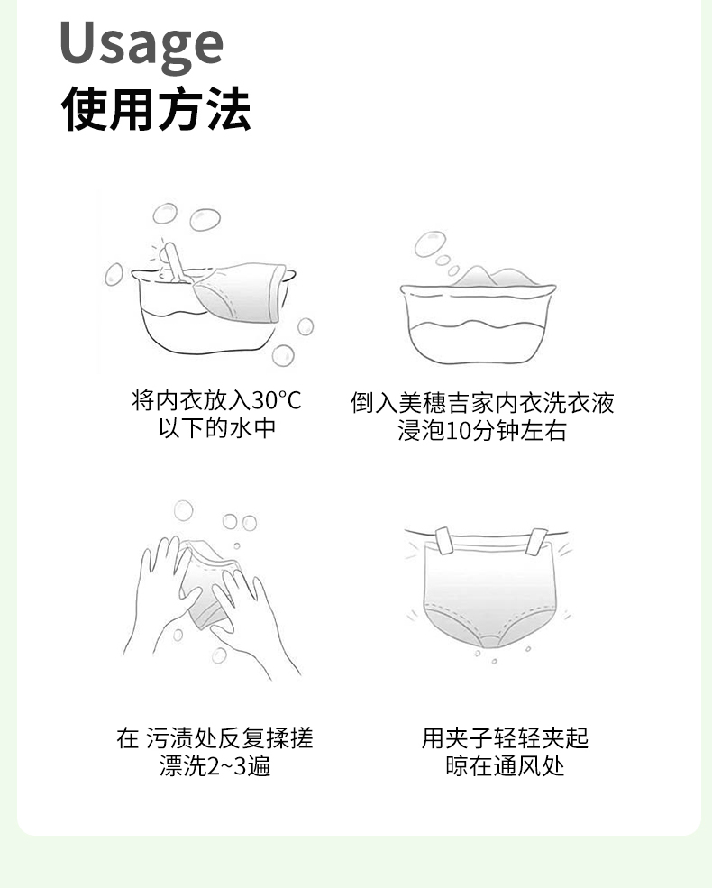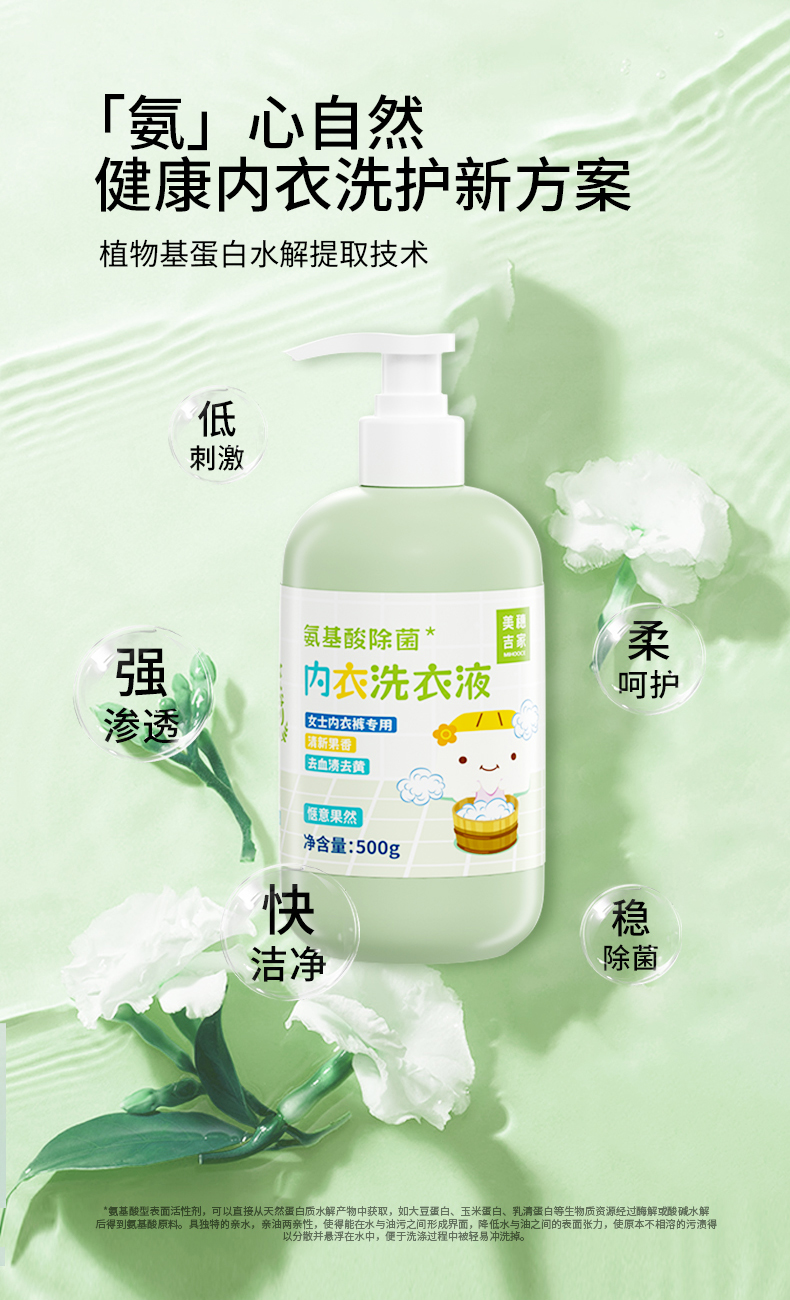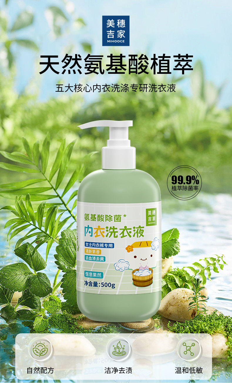 商品名称:美穗吉家氨基酸除菌内衣洗衣液500g*3瓶