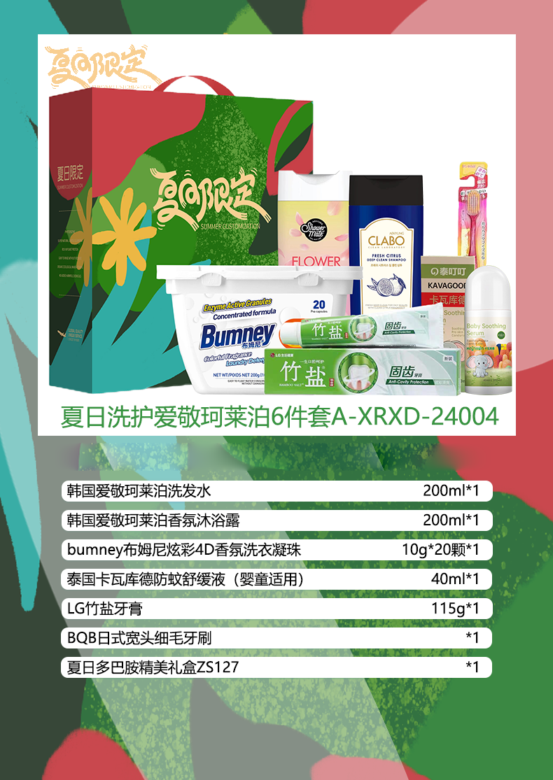 商品名称:夏日洗护爱敬珂莱泊礼盒六件套