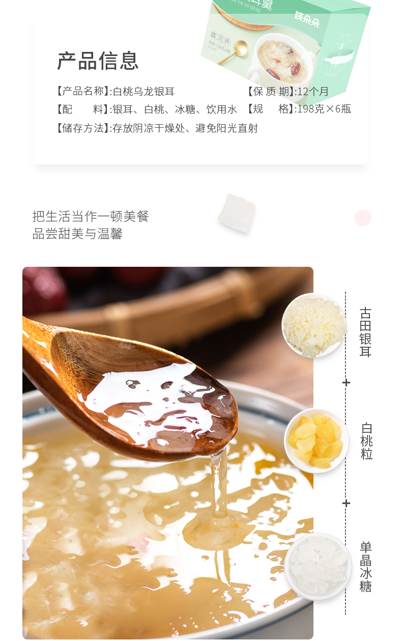 商品名称:姚朵朵白桃乌龙银耳羹198ml*6瓶