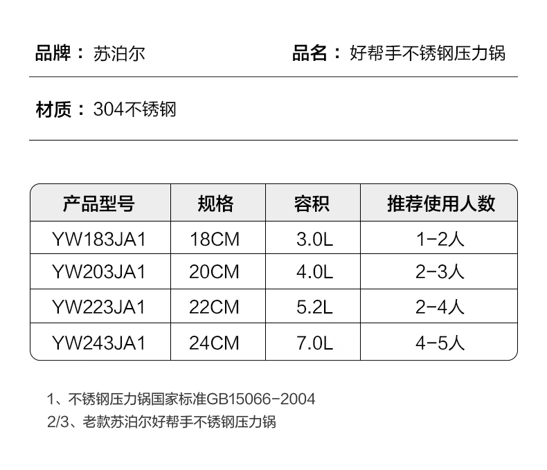 商品名称:SUPOR/苏泊尔好帮手不锈钢压力锅