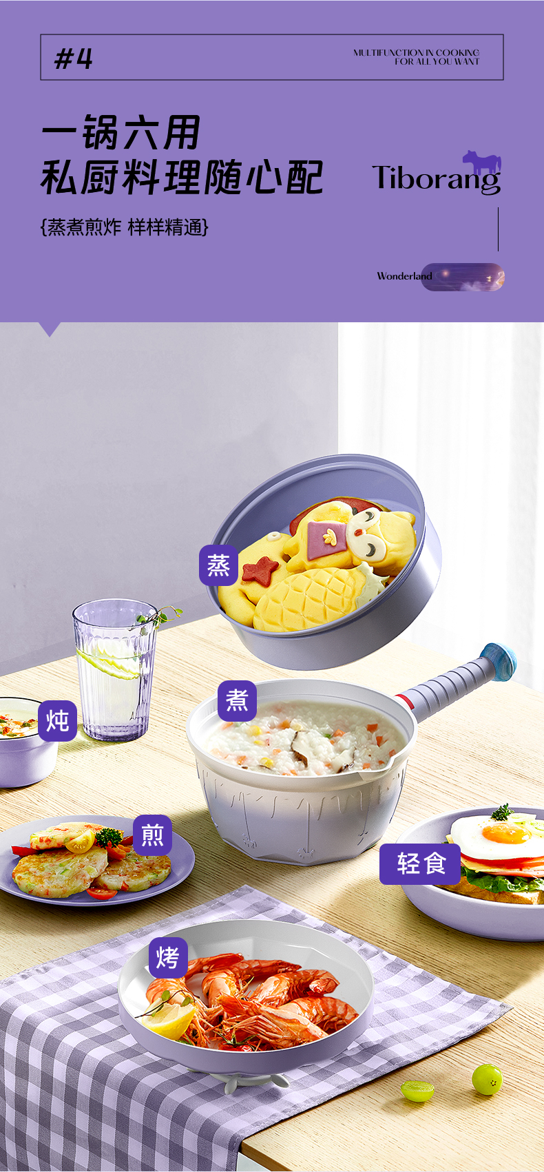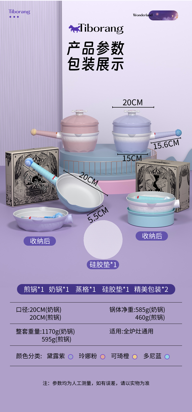 商品名称:【京东配送】TIBORANG/帝伯朗零氟系列旋转木马多用锅组合套装DBL-LYFST01
