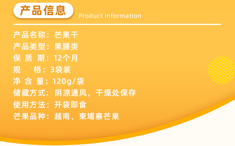 商品名称:榴芒一刻原切芒果干120g*3袋