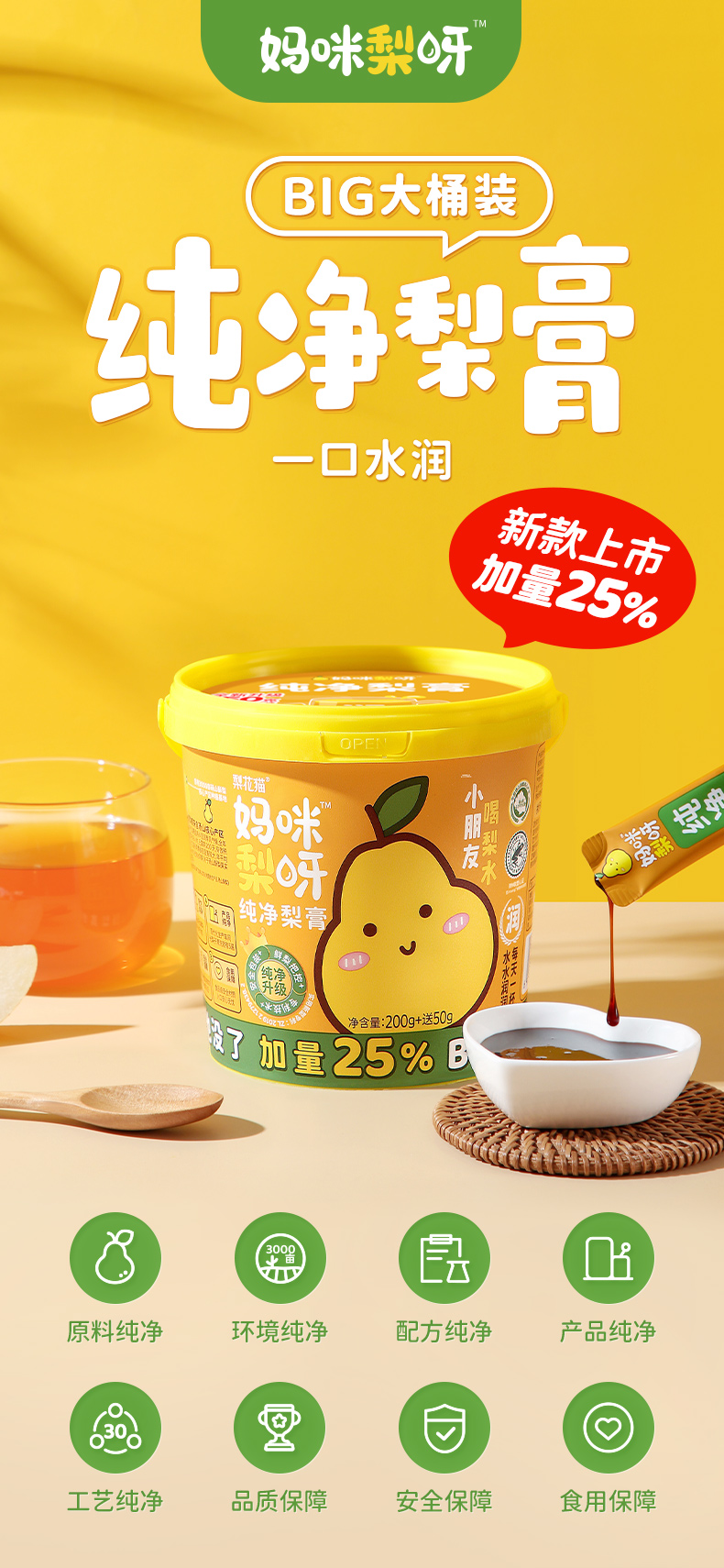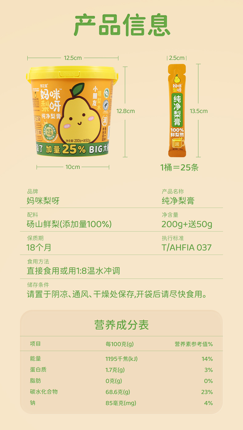 商品名称:梨花猫妈咪梨呀纯净梨膏250g*2桶