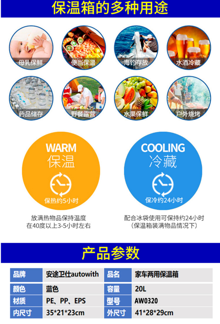 商品名称:AUTOWITH/安途卫仕20升家车两用保温箱-蓝色AW0320