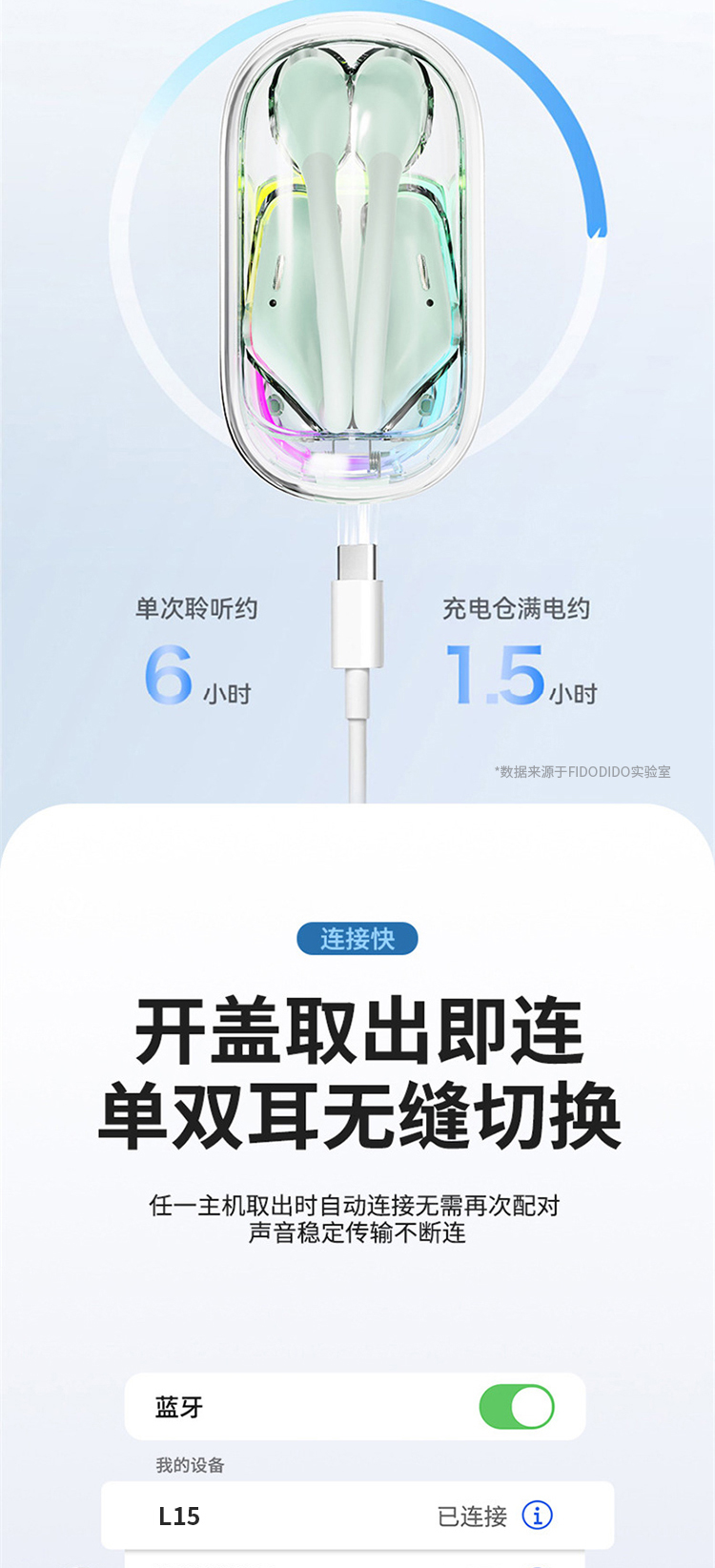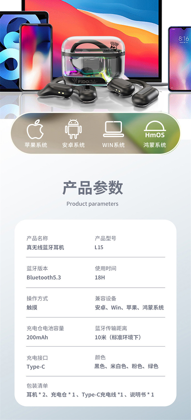 商品名称:FIDO DIDO七喜小子OWS真无线蓝牙耳机L15