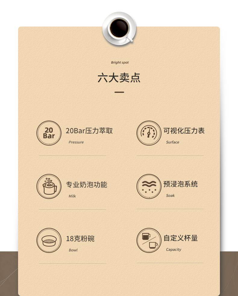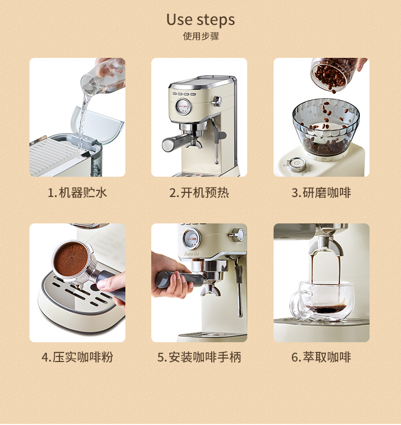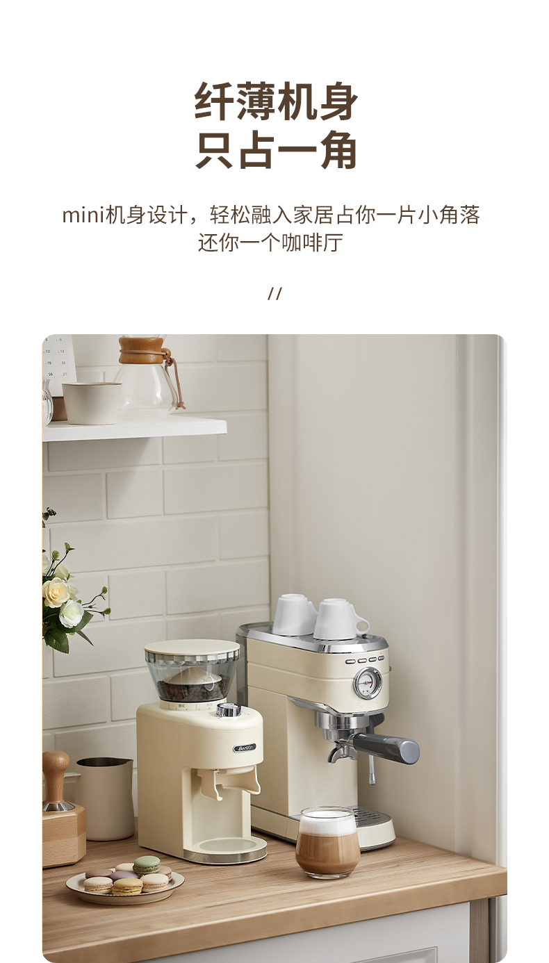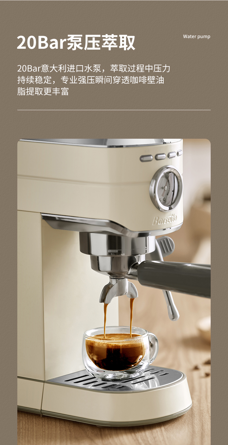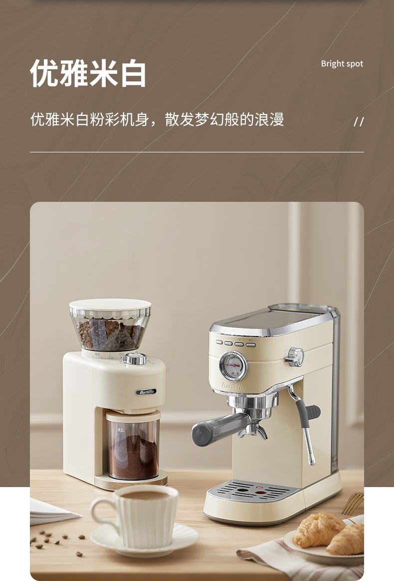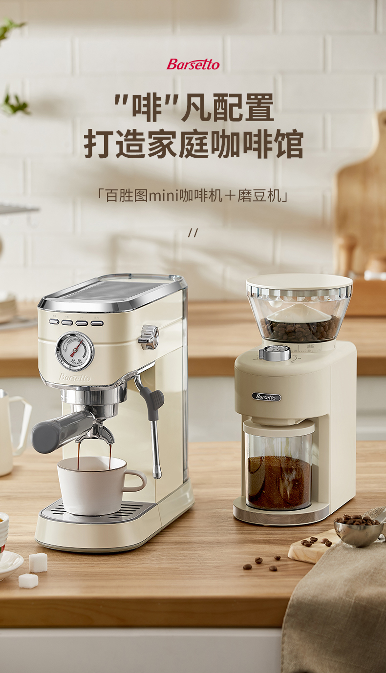 商品名称:【仅发鄂尔多斯】Barsetto/百胜图mini小钢炮意式半自动咖啡机-米白色BAE418
