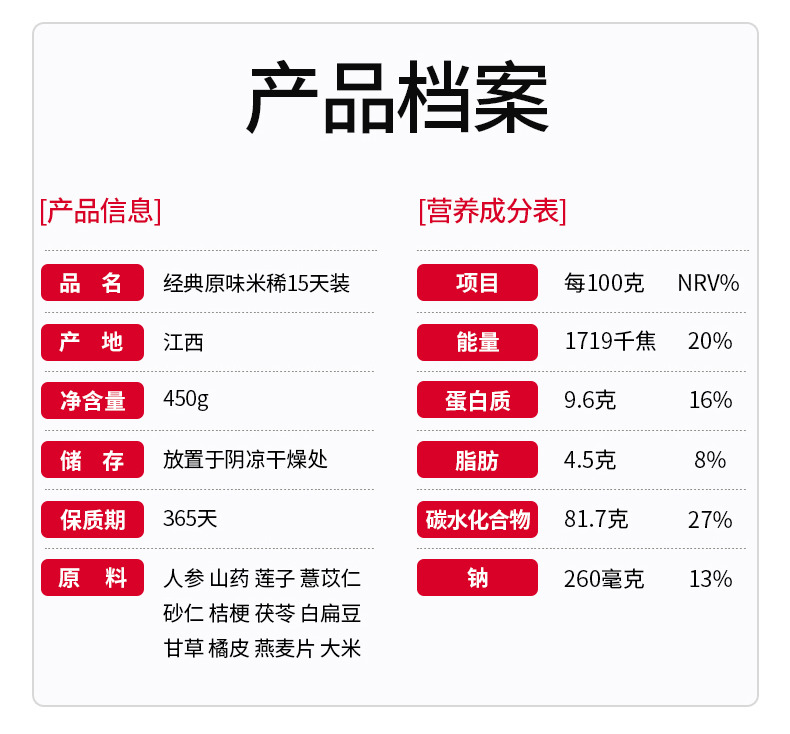 商品名称:江中食疗江中猴姑经典原味米稀15天装450g