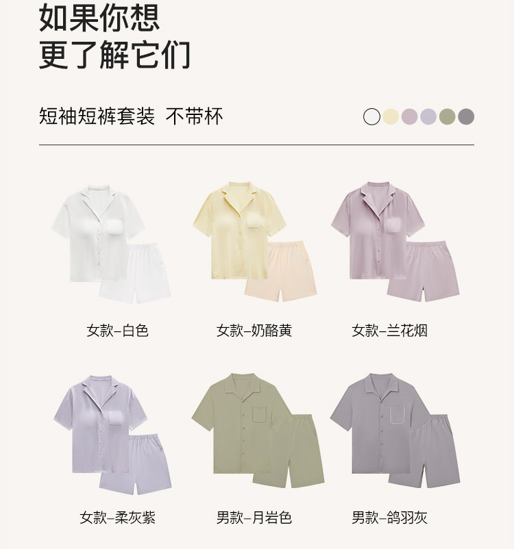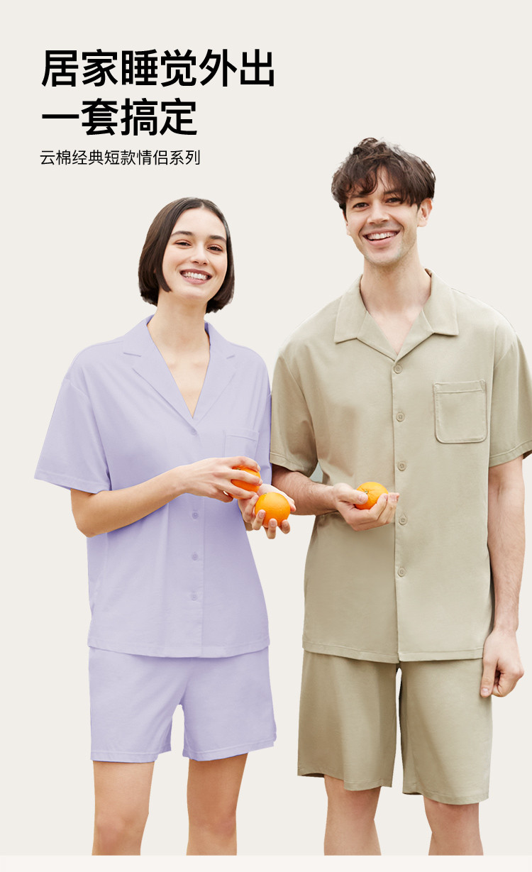 【断码捡漏】刘雯同款云棉翻领短袖短裤家居服不带杯套装睡衣女 385024