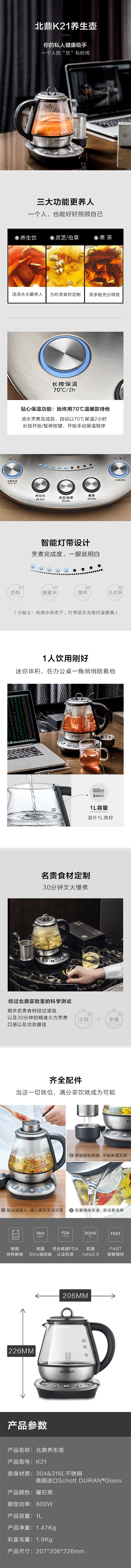 商品名称:【顺丰配送】BUYDEEM/北鼎1升多功能养生壶-曜石黑K21