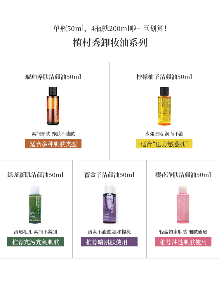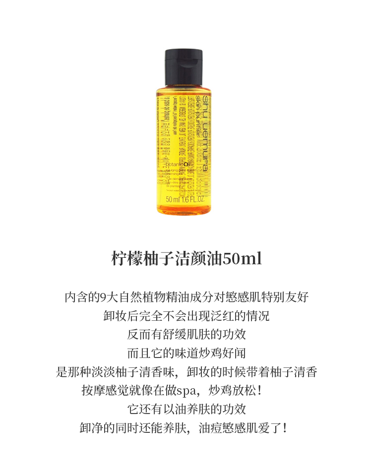 商品名称:Shu Uemura/植村秀 琥珀/柠檬柚子/绿茶/樱花/焕颜覆盆子 卸妆油洁颜油 15ml/50ml