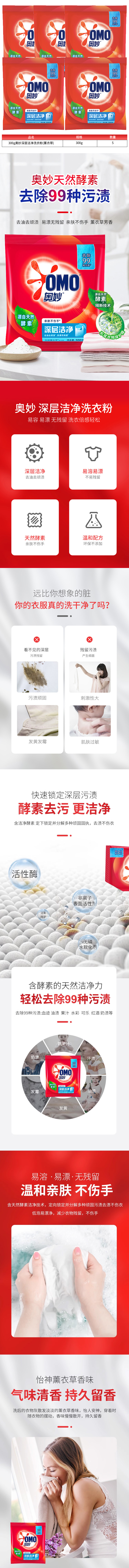 商品名称:OMO/奥妙怡神薰衣草香型深层洁净洗衣粉300g*5袋
