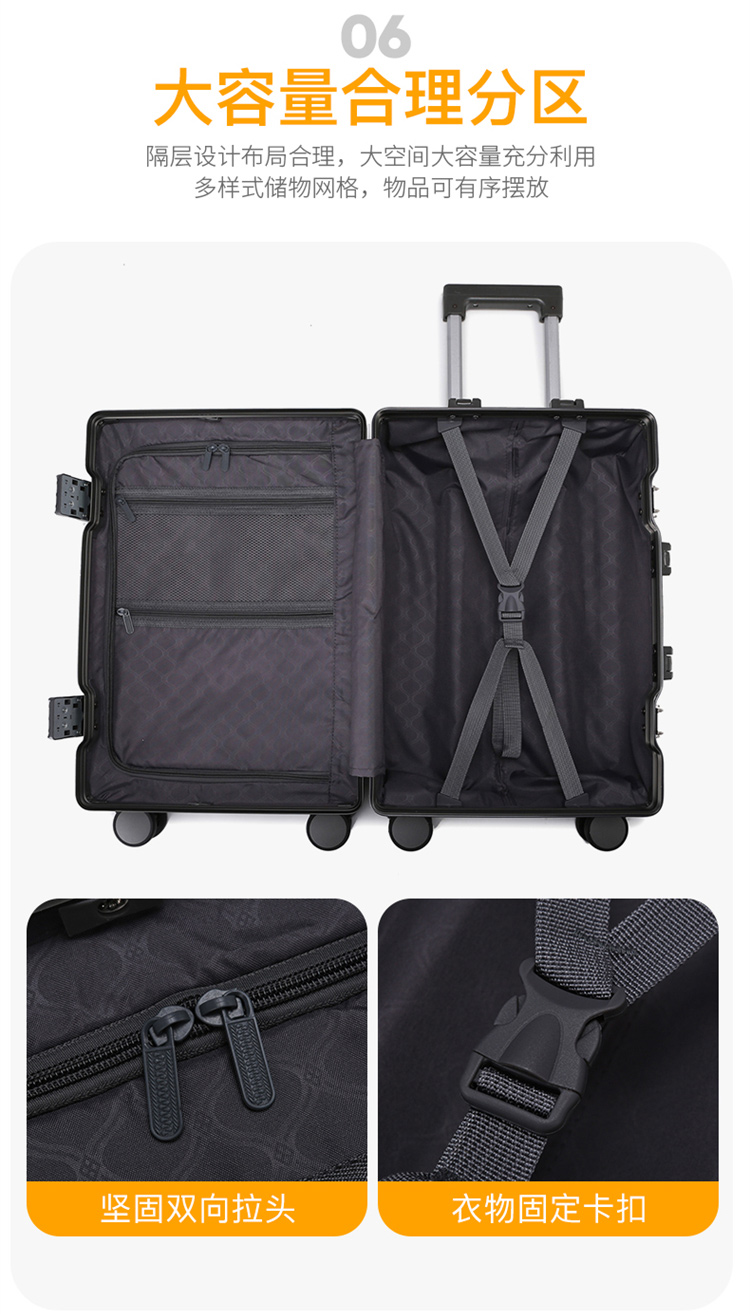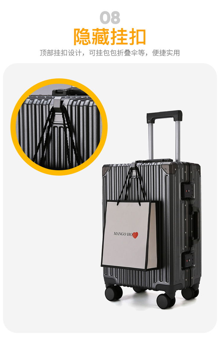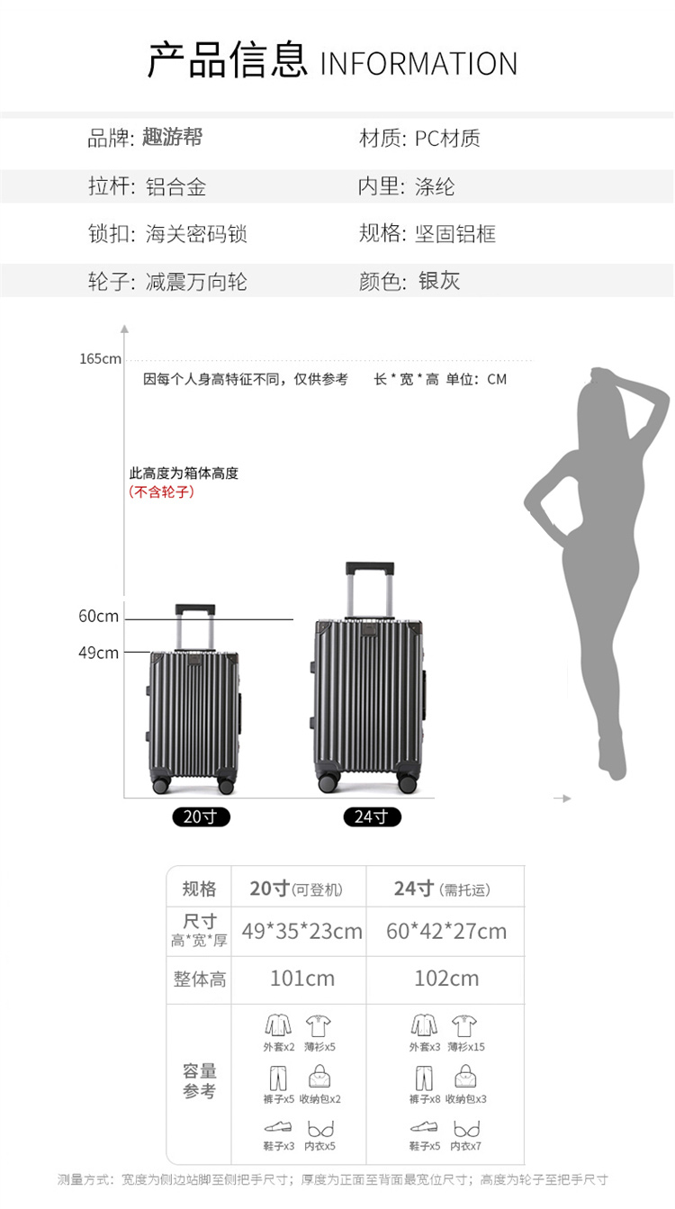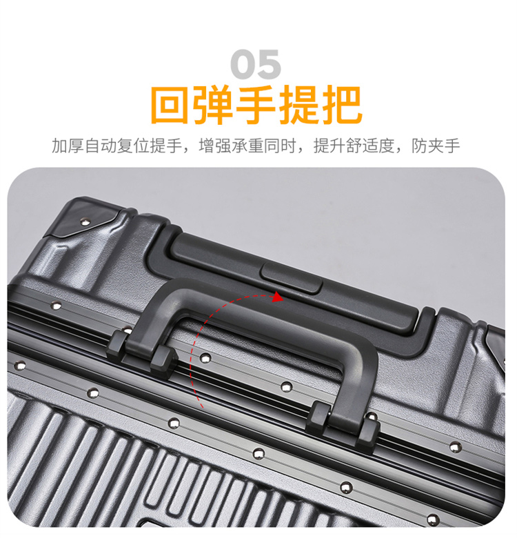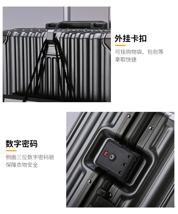 商品名称:趣游帮铝框万向轮行李箱-银灰色JDY-1201