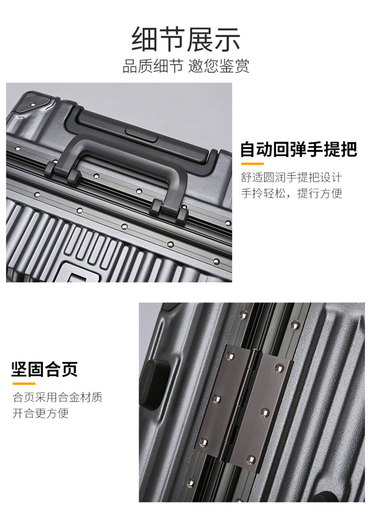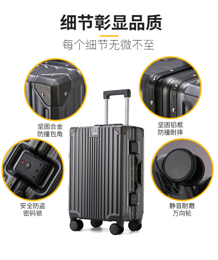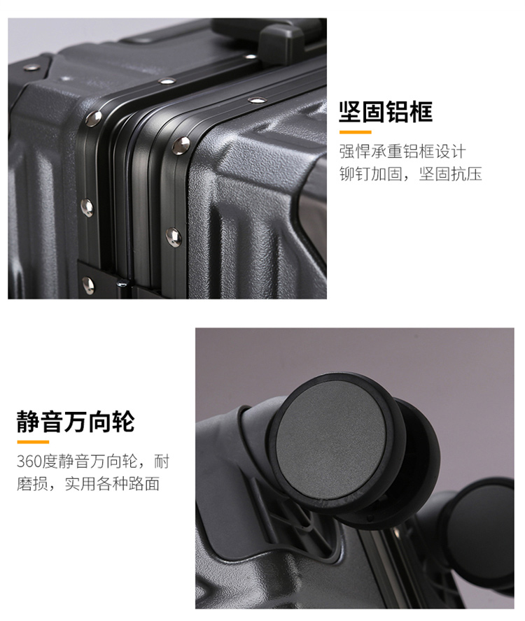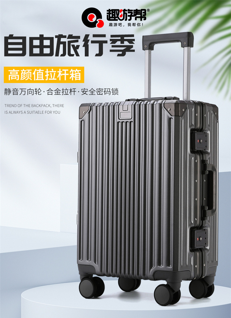 趣游帮铝框万向轮行李箱-银灰色JDY-1201
