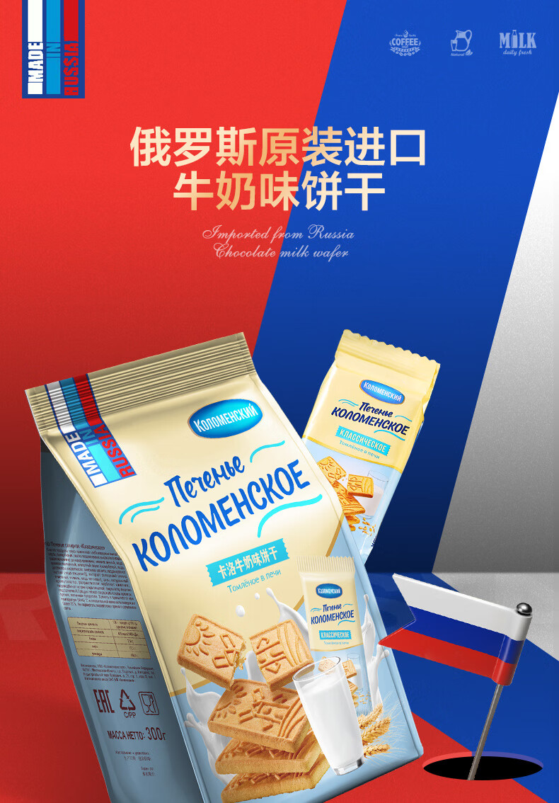 商品名称:阿孔特牌俄罗斯进口卡洛姆思克牛奶味饼干300g*2袋