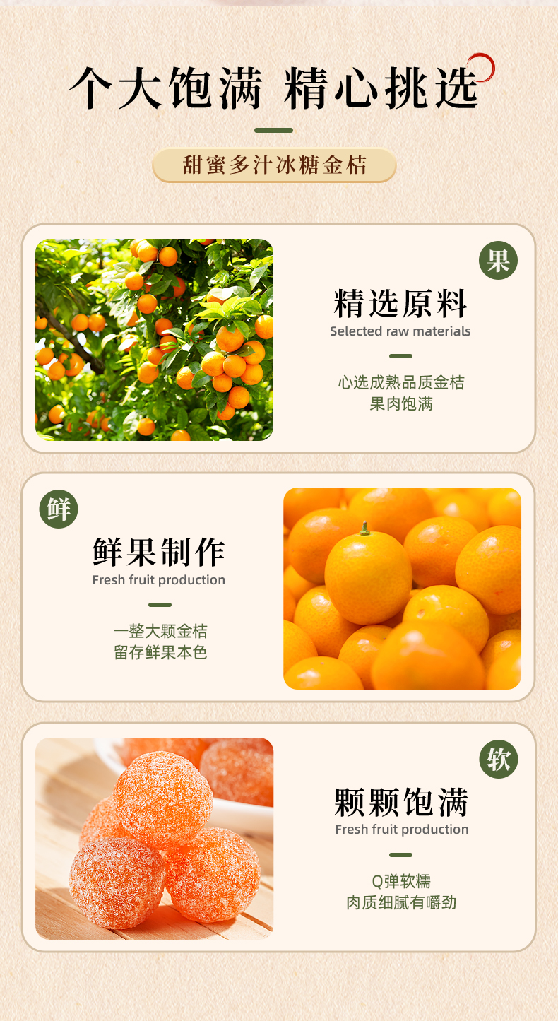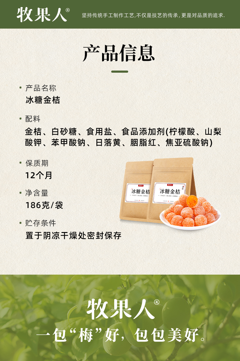 商品名称:牧果人冰糖金桔干186g*4袋