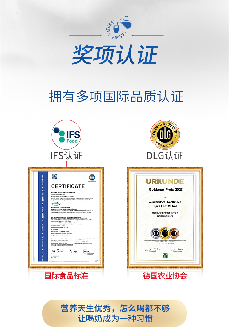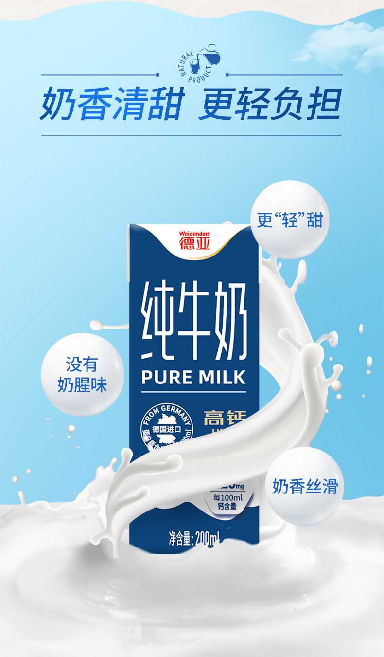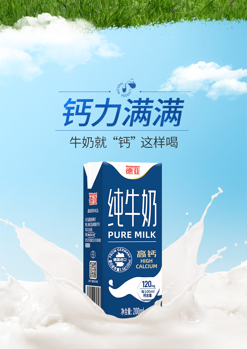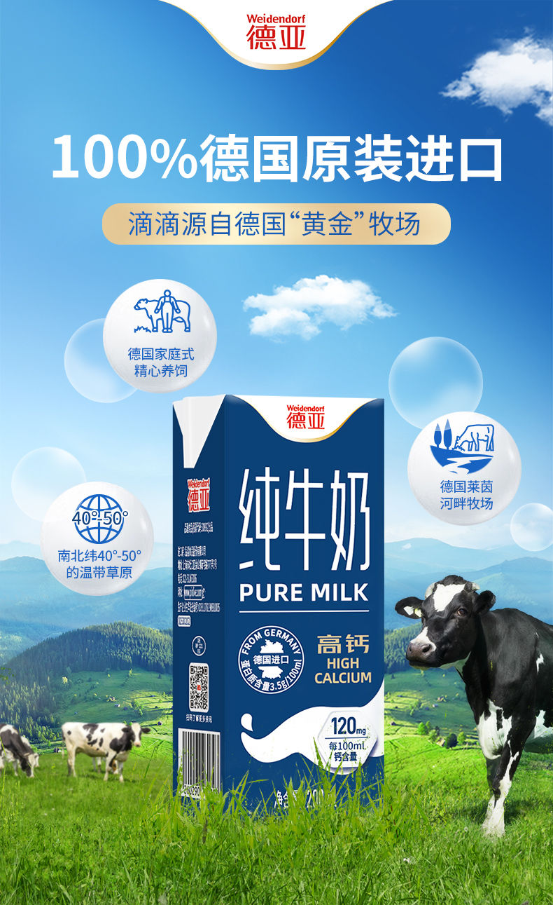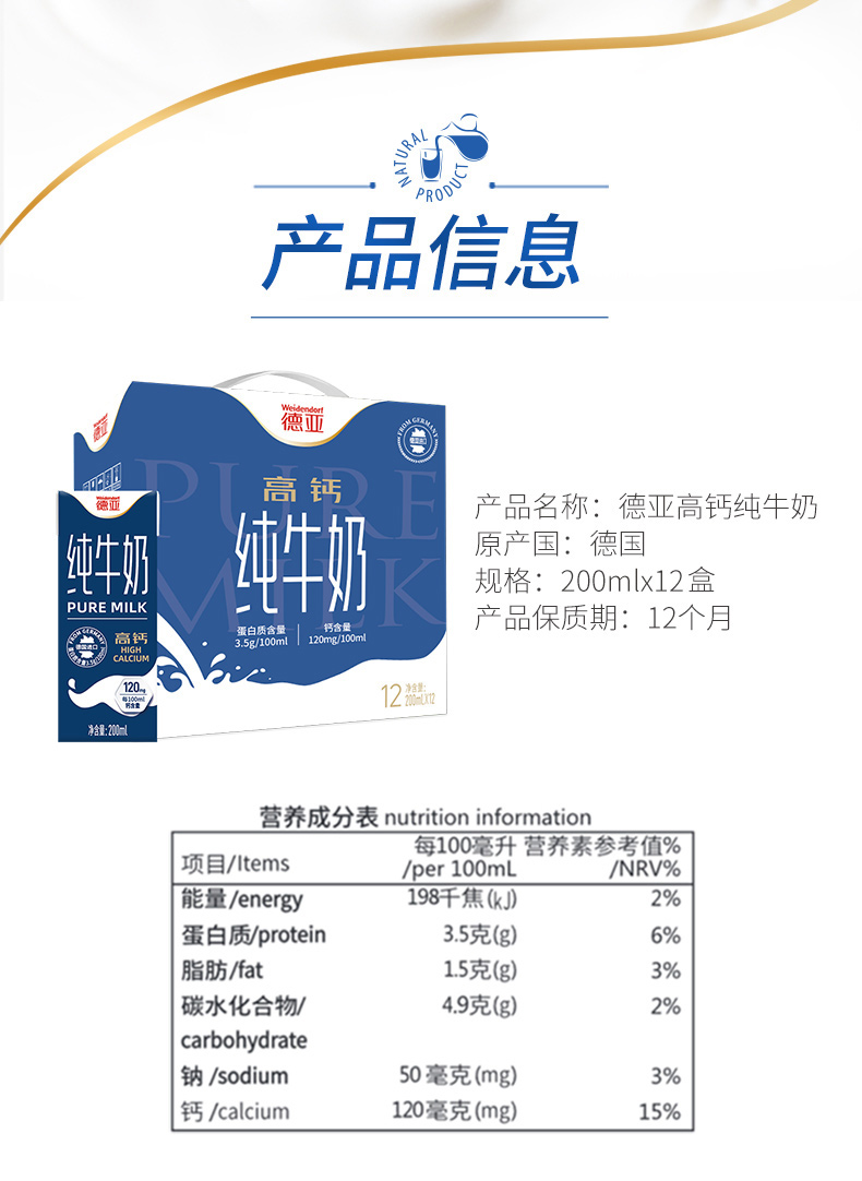 商品名称:Weidendorf/德亚高钙纯牛奶整箱200ml*12盒