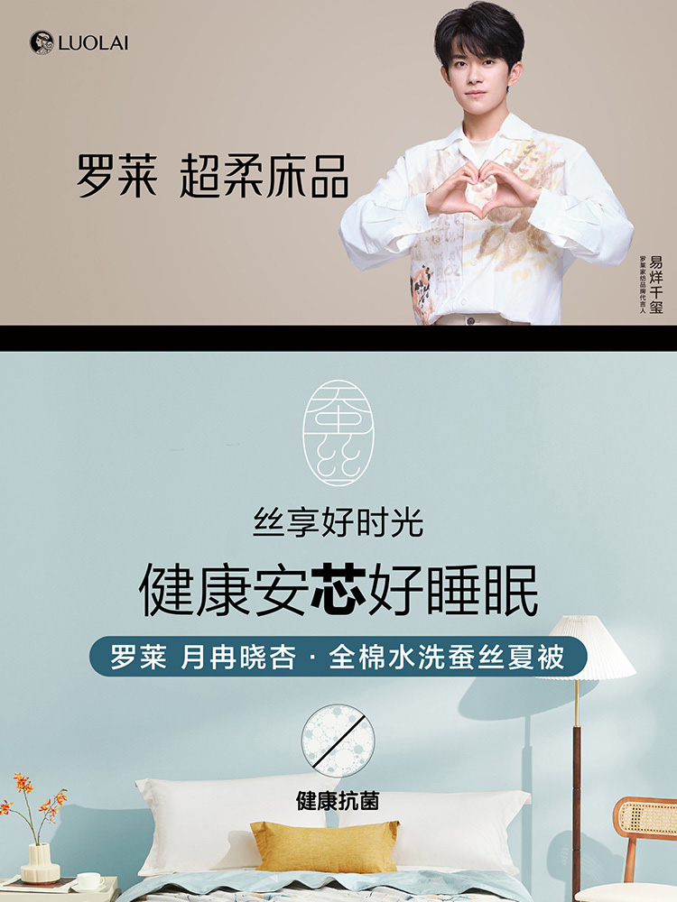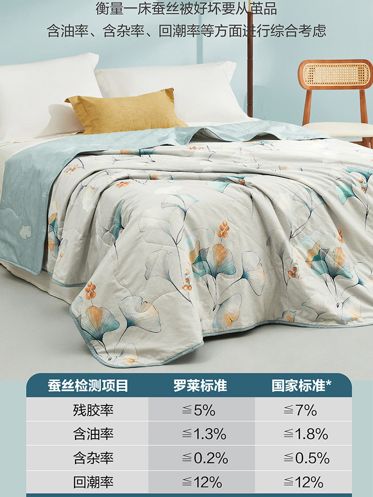 【京东/顺丰配送】LUOLAI/罗莱家纺月冉晓杏全棉水洗蚕丝夏被200*230cm 1400g