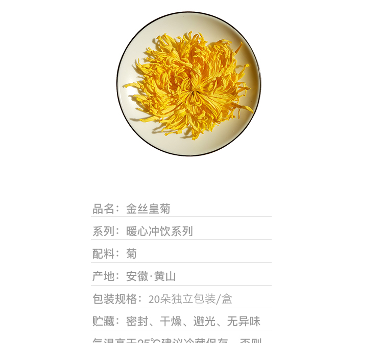 商品名称:徽州大朵 金丝皇菊20朵/盒